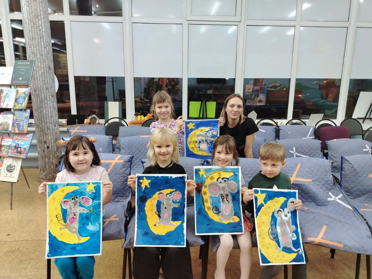 В библиотеке прошёл мастер-класс по рисованию гуашевыми красками на тему: "Мышка на месяце". Мы отправились в самое настоящее космическое путешествие с нашей кисточкой и гуашью! Нашими героями стали очаровательная серая мышка и большой жёлтый месяц. Наши юные художники научились смешивать цвета, чтобы получить идеальный серый мышиный окрас, и осваивали технику рисования больших фигур, создавая яркий лунный серп. А самая волшебная часть – это, конечно, маленький сырок в лапках у мышки! Каждая работа наполнилась добротой, сказкой и детской фантазией. Теперь у каждого участника есть свой кусочек волшебной вселенной, где исполняются самые заветные желания!