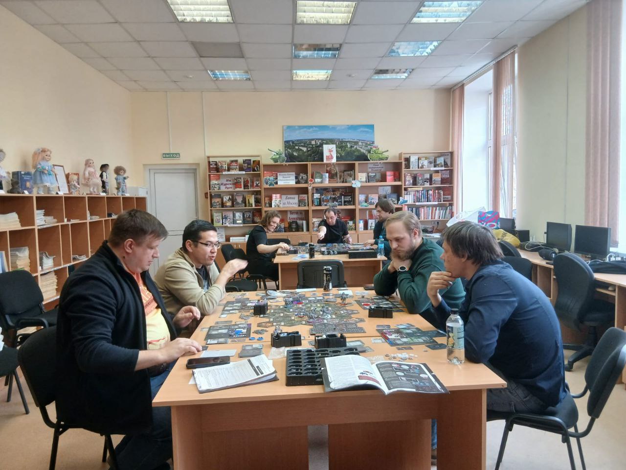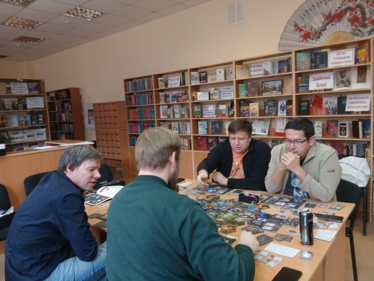 В библиотеке состоялась первая отборочная игра турнира клуба интеллектуальных игр "Прогресс" по настольной игре "Войны Чёрной Розы: Возрождение". Игроки предстали в роли боевых чародеев, которым предстояло не только составлять свои спеллбуки из шести доступных магических школ и перебрасываться между собой могущественными заклинаниями, но и выполнять задания, открывать древние тайны, расставлять ловушки, восстанавливать развалины, призывать и прокачивать монстров.