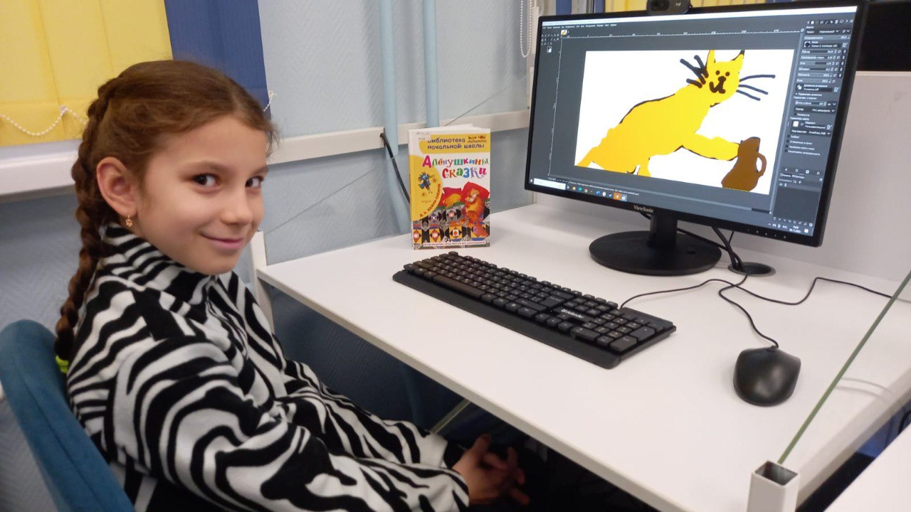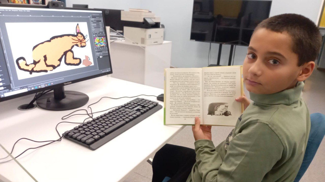 В библиотеке юные художники рисовали обложки книг. Во время занятия "Ожившие страницы" сотрудники библиотеки рассказали о работе электронного каталога, помогли ребятам сориентироваться и найти книги, обложки к которым ребятам хотелось бы написать. После выбора книг вместе обсудили сюжет, прочитали отрывки, изучили иллюстрации, а ребята написали обложки любимых книг.