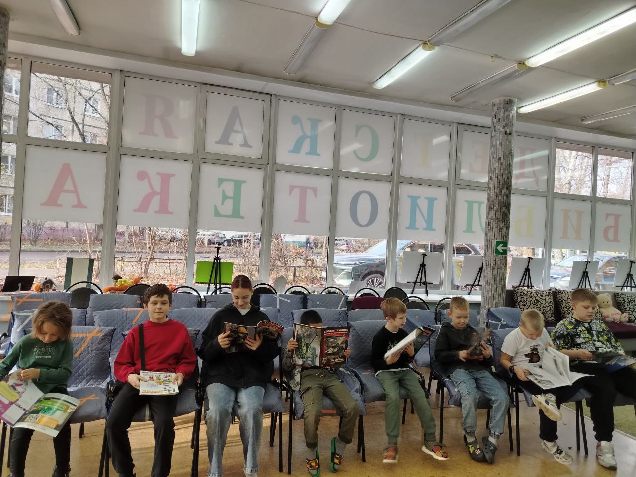 Перед началом занятия юные читатели рассматривали красочные журналы и обсуждали заинтересовавшие их статьи.