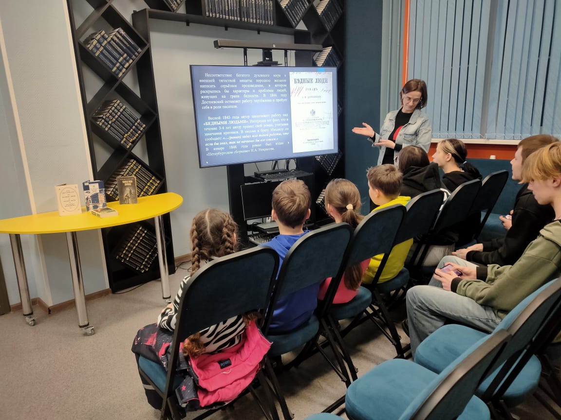 В библиотеке прошёл познавательный час для любителей "Клуба "К.О.Т" (Книги. Общение. Тусовка). В 2025 году роман "Бедные люди" Фёдора Михайловича Достоевского отметил 180-летний юбилей. Эта книга положила начало литературной деятельности писателя. Роман в письмах, описывающих жизнь и переживания бедных людей, стремящихся к своему счастью. Произведение было высоко оценено современниками, так В. Г. Белинский, прочитав роман, написал, что Достоевский "имя совершенно неизвестное и новое, но которому, кажется, суждено играть значительную роль в нашей литературе". Вниманию читателей были представлены произведения автора из фонда библиотеки "Бедные люди", "Белые ночи", "Двойник" и др. Произведения Достоевского сложны, требуют вдумчивого чтения, определённых усилий не только ума, но и души.