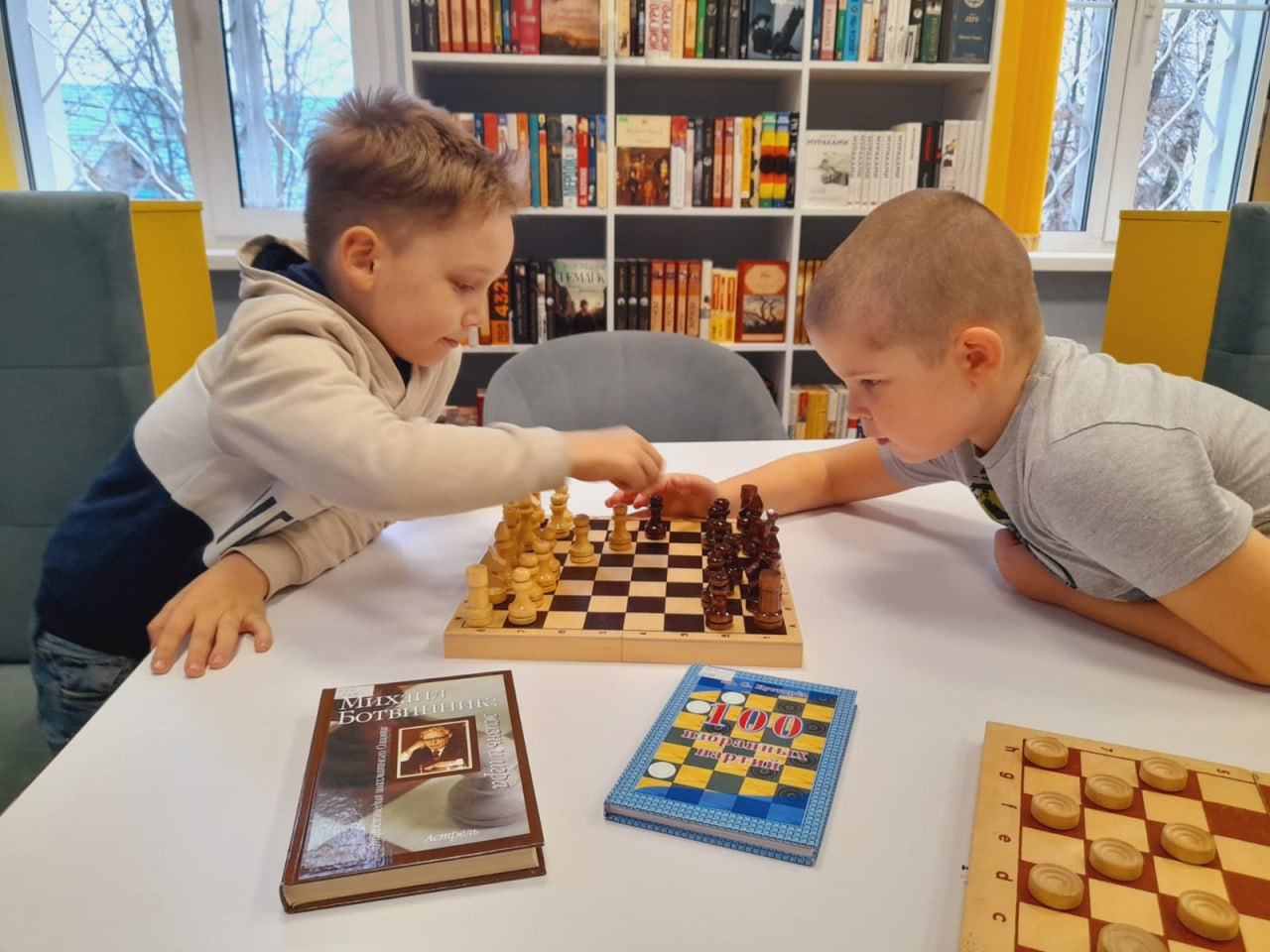 В библиотеке прошло очередное занятие клуба любителей шахмат "Белая ладья". Юные шахматисты пришли в библиотеку, чтобы сразиться друг с другом и определить, кто окажется сегодня сильнее в этой увлекательной игре.