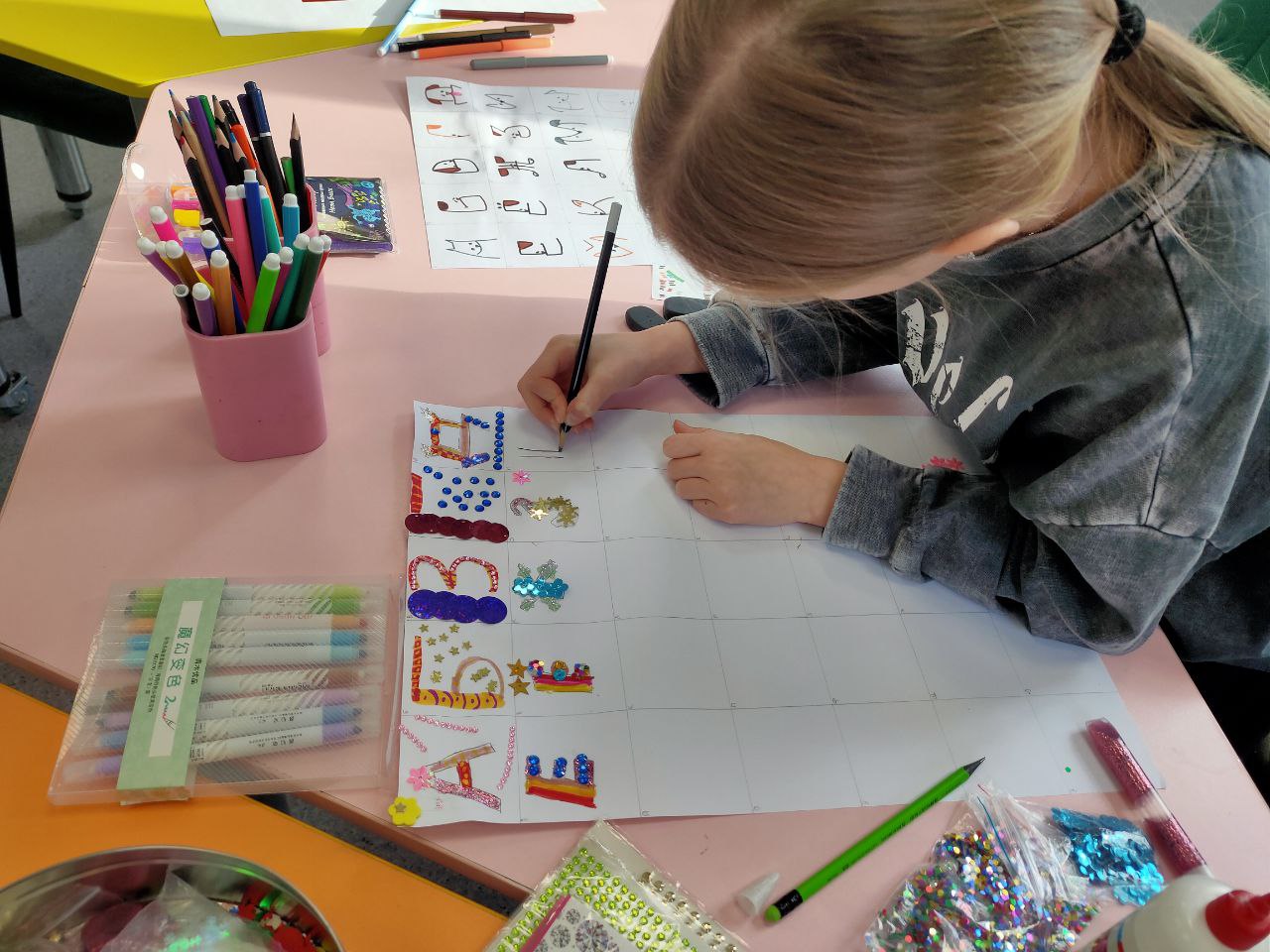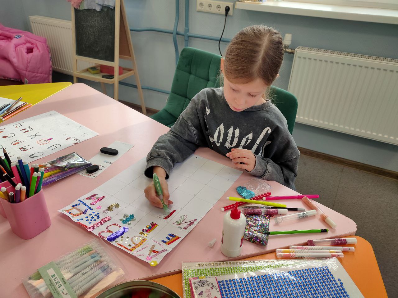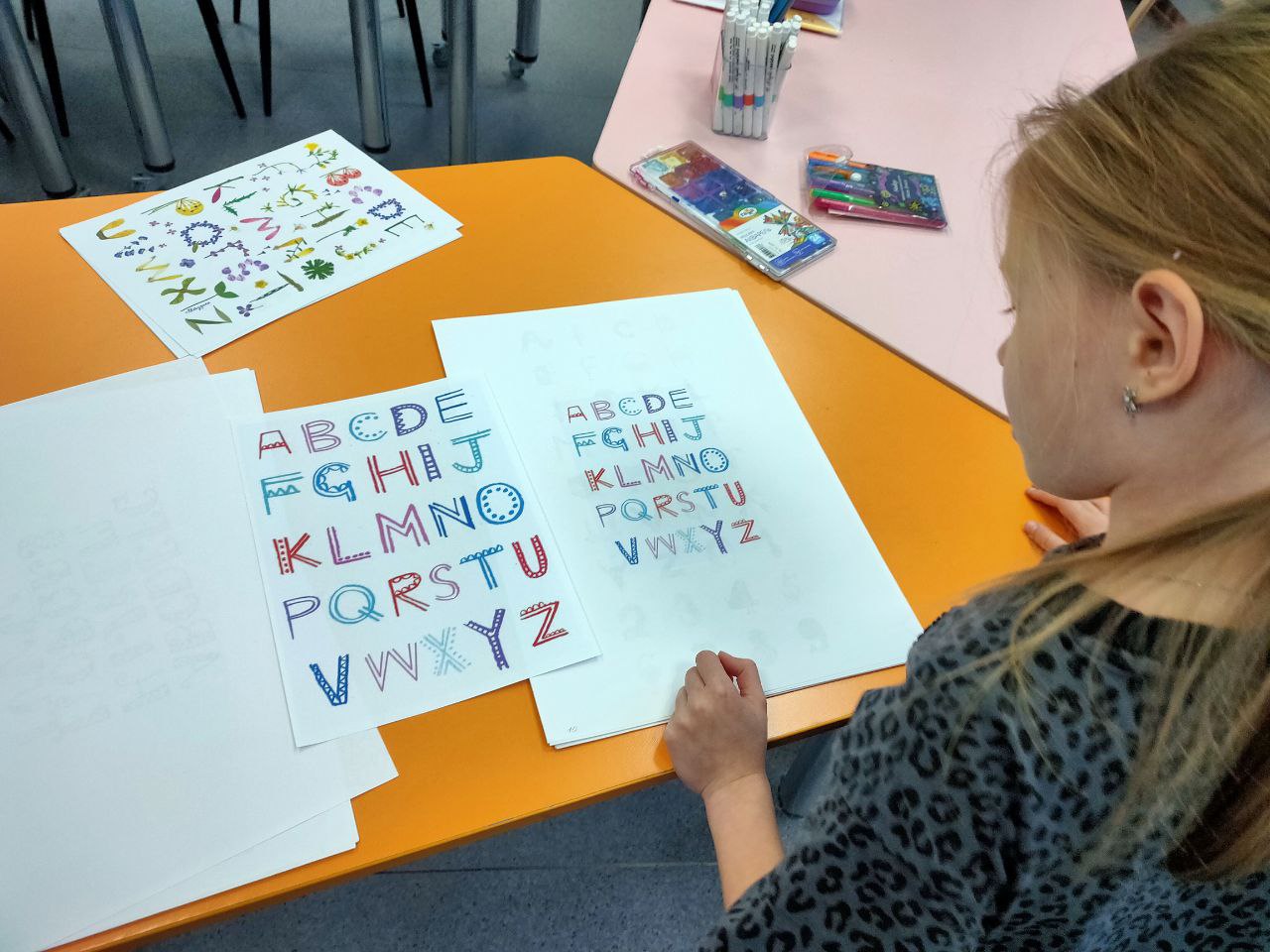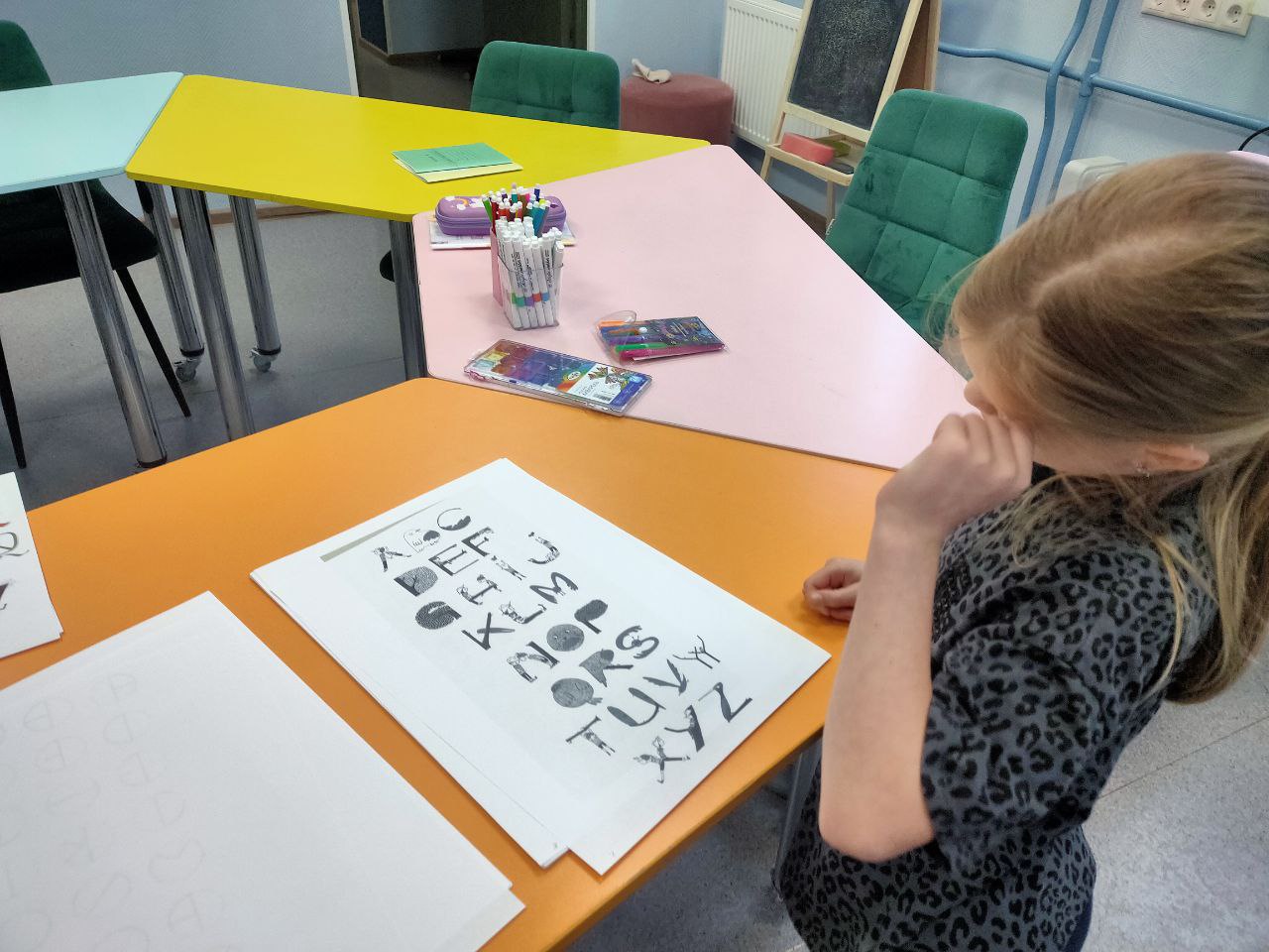 Мы уже познакомились с разными стилями шрифтов, пробовали копировать шрифты, создавали дизайн буквы и начали осваивать базовый рукописный шрифт. Задачей сегодняшнего задания стало создание собственного шрифта. Отталкиваясь от своих интересов: блесточки, пёрышки, радуга или бантики, юная каллиграфиня Варя принялась экспериментировать в создании собственного шрифта. Занятие подошло к концу и пусть будущий авторский шрифт "Блесточка" пока не готов, но в ребёнке проснулся  устойчивый интерес, мотивация и желание работать дальше.