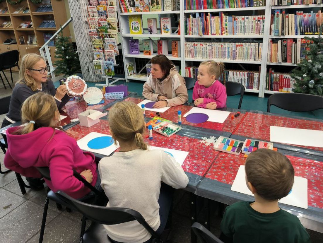 В библиотеке прошло занятие творческого кружка "Мастерилка". Дети познакомились со сказкой Татьяны Александровой "Медвежонок Бурик". Это история про маленького, забавного и доброго медвежонка, который с любопытством познаёт лесной мир вокруг него. Затем ребята изготовили аппликацию "Медвежий сон" и размышляли о жизни бурого медведя и особенностях зимней спячки косолапого.