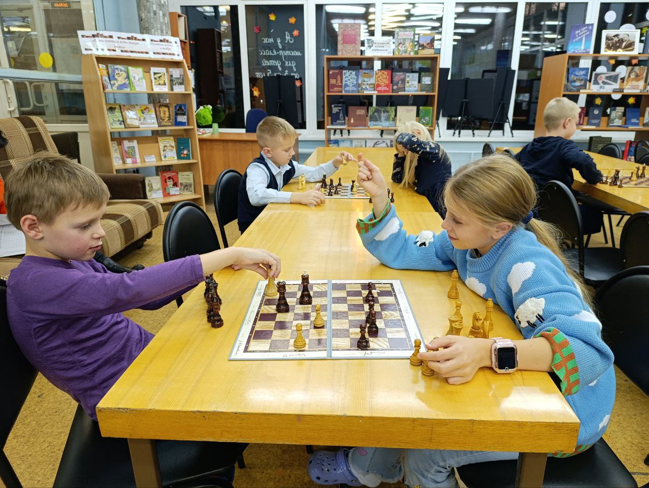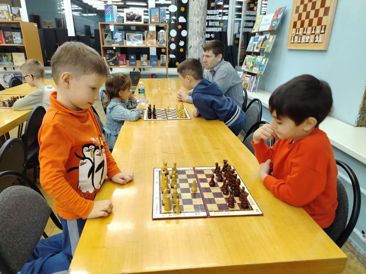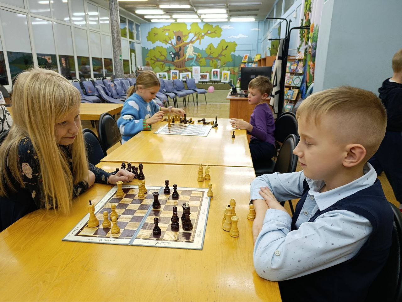 Прошло очередное занятие клуба любителей шахмат "Белая ладья". Ребята с удовольствием приходят в библиотеку, чтобы поиграть в шахматы между собой и почитать детские журналы перед занятием.