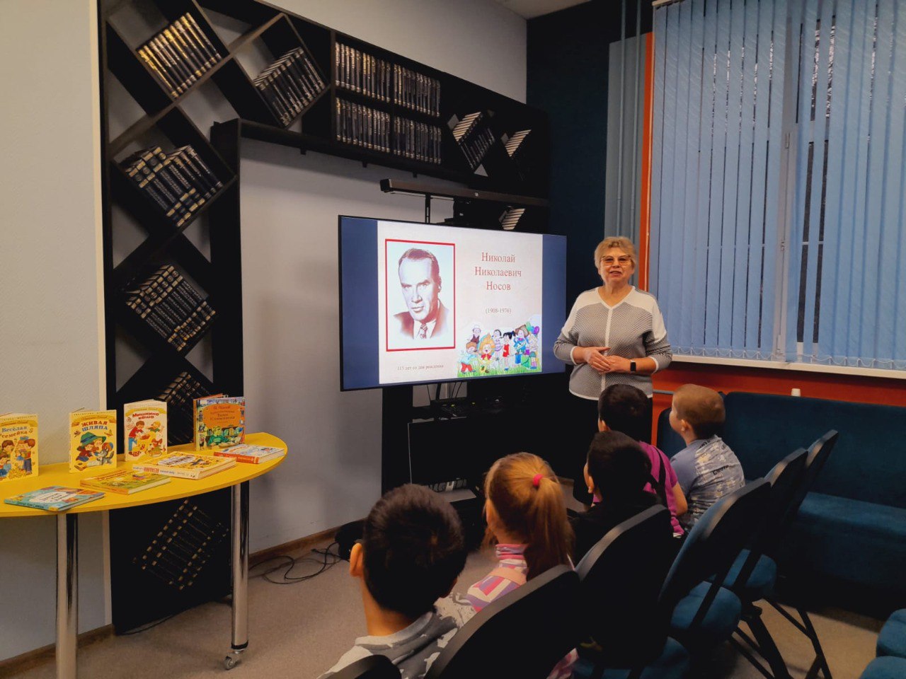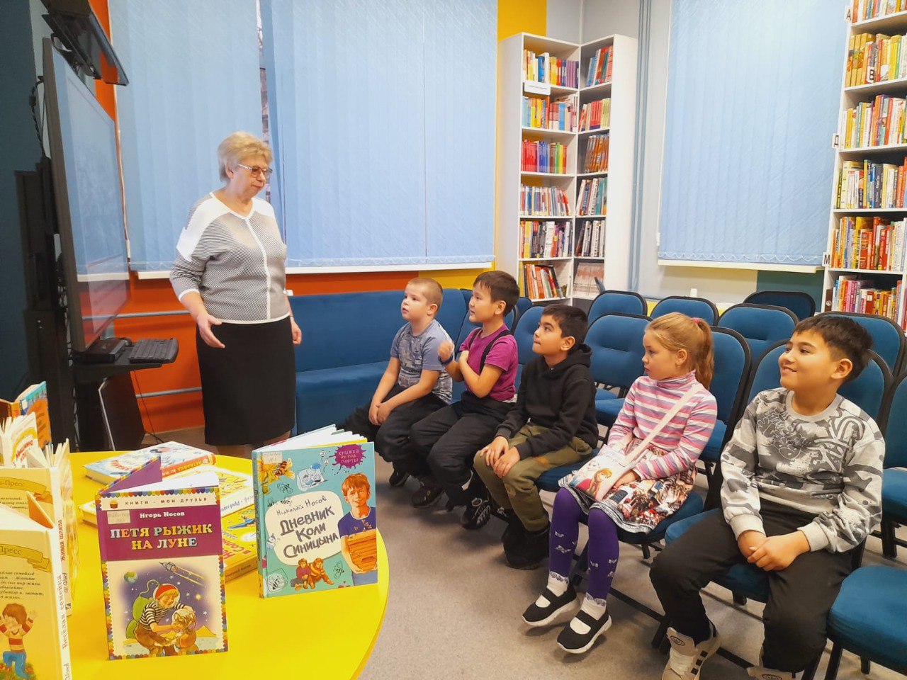 В библиотеке прошёл литературный час для любителей "Клуба "К.О.Т" (Книги. Общение. Тусовка) на тему "Весёлая страна Носова" по страницам книг любимого писателя Николая Николаевича Носова. Сотрудник библиотеки в увлекательной форме познакомила ребят с биографией и творчеством Николая Носова, необыкновенного человека и замечательного художника слова. Дети узнали много интересного о том, где он брал сюжеты для своих рассказов. Далее познакомились с весёлыми рассказами Николая Носова "Огурцы", "Фантазёры", "Заплатка", конечно же, "Незнайка и его друзья". В завершение мероприятия библиотекарь провела обзор книжной выставки "Весёлая страна Носова".