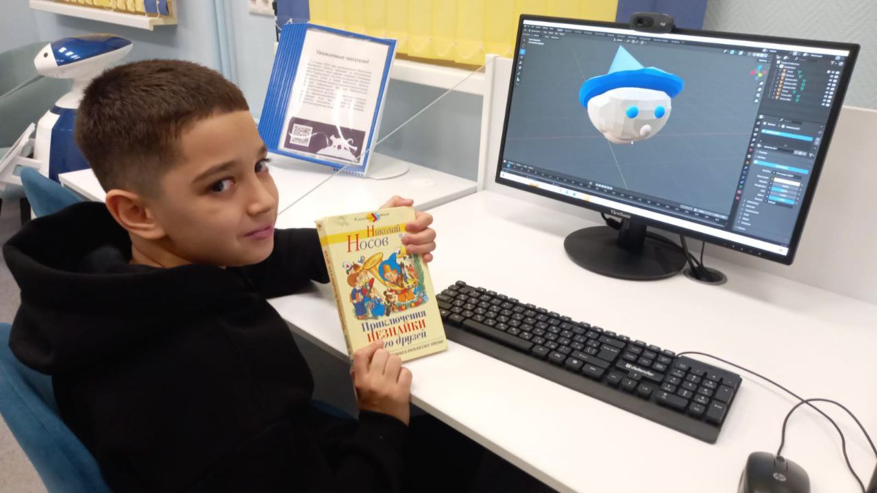 В рамках занятия по изучению редактора 3D графики Blender "Войти в IT" юные читатели библиотеки моделировали иллюстрации к книгам про Незнайку.