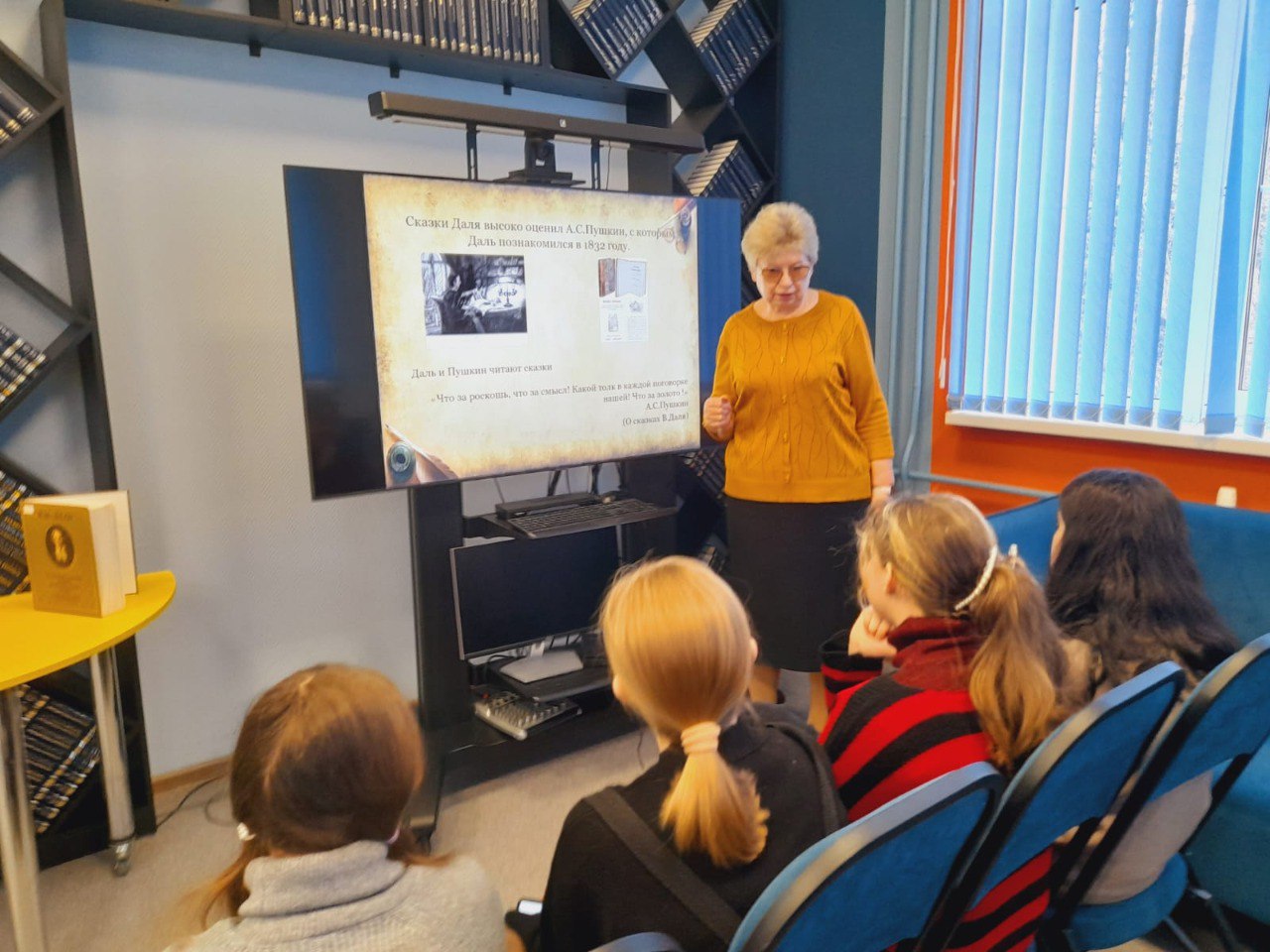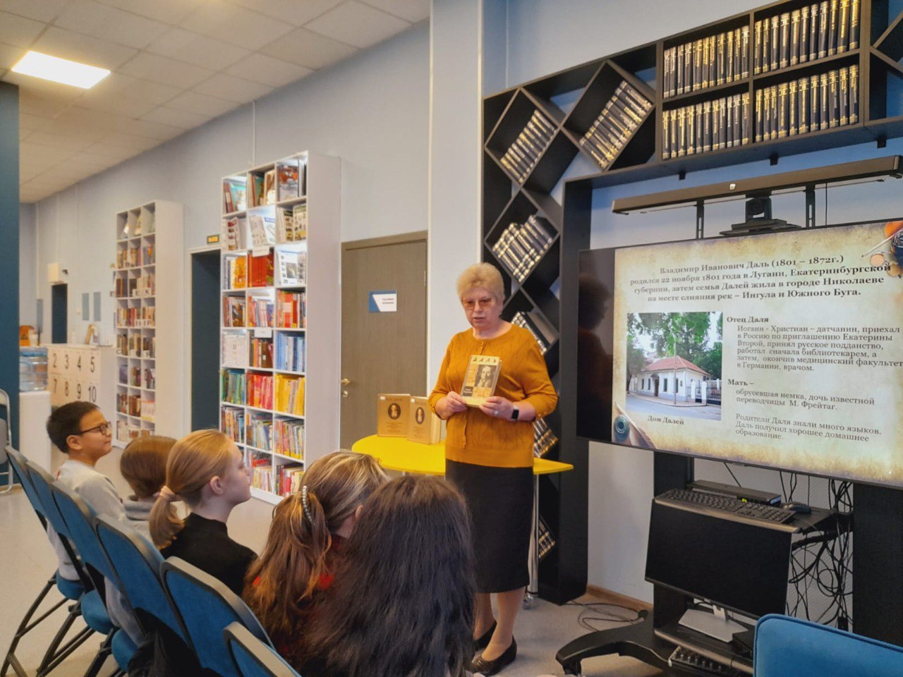 В библиотеке для любителей "Клуба "К.О.Т" (Книги. Общение. Тусовка) прошло мероприятие о Владимире Ивановиче Дале, словарях и справочных изданиях. Ребята познакомились с понятием "словарь" и узнали, какими разными и познавательными они бывают. На слайдах презентации увидели самые древние словари на Руси и первый русский толковый словарь Российской Академии наук. Юные читатели окунулись в историю жизни и творчества великого русского писателя, узнали, что Толковый словарь Даль собирал, составлял и совершенствовал 53 года. В нём собрано 200 тысяч русских слов – точных, сочных, образных. С живым интересом ребята прослушали рассказ о военной службе хирурга Владимира Даля, о его дружбе с Александром Сергеевичем Пушкиным, о последних днях и минутах жизни поэта. Историю о том, что подвигло писателя заниматься собирательством слов. Словарь В. И. Даля и в настоящее время продолжает оставаться бесценной сокровищницей истории русского народа, его культуры и языка. Мероприятие получилось особенно интересным благодаря использованию уникальных материалов из электронного фонда Президентской библиотеки имени Б. Н. Ельцина.