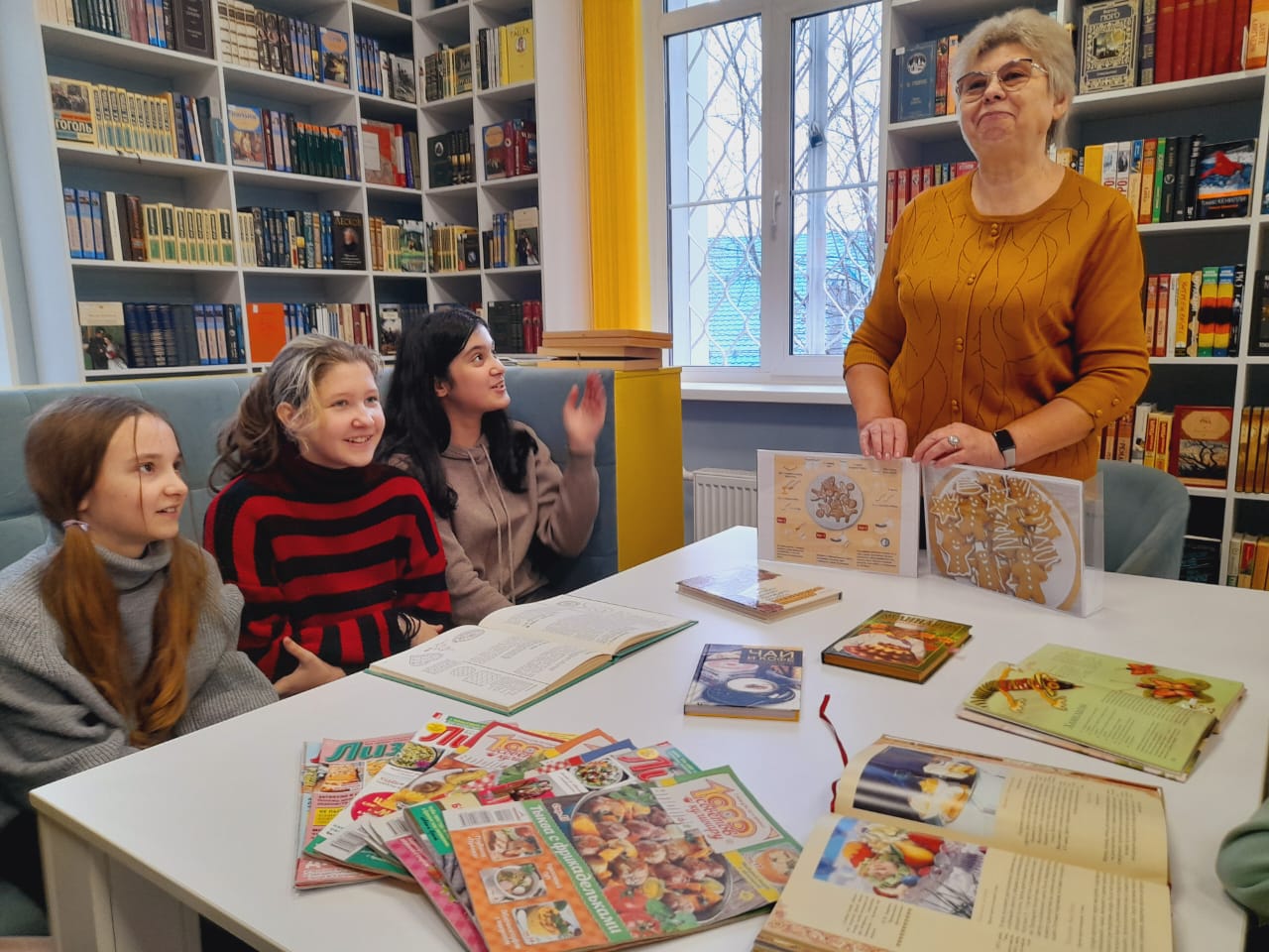 В библиотеке в рамках клуба любителей здорового питания "Вкусные истории" прошёл познавательный час на тему "Истории и традиции имбирного пряника". Сотрудник библиотеки рассказала об история происхождения имбирных пряников и откуда пришел обычай выпечки имбирных пряников и какие пряники пекли на Руси. Книги и журналы, представленные на выставке мероприятия, помогли ребятам познакомиться с различными видами, формами имбирных пряников и печенья, а так же интересными рецептами. Далее ребята делились домашними рецептами выпечки вкусного печенья.