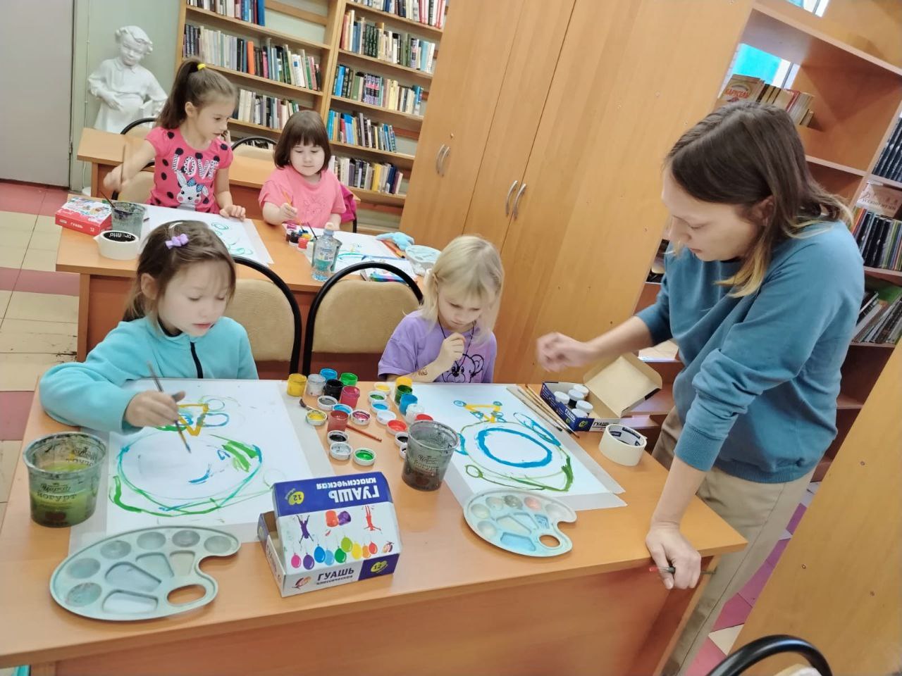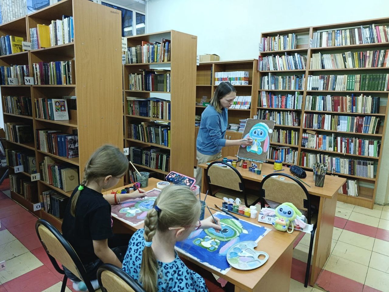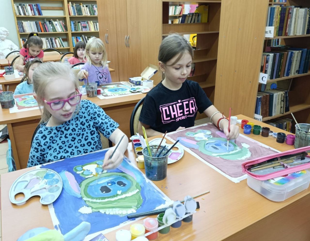 В библиотеке прошёл мастер-класс по рисованию гуашевыми красками. Мы познакомились с новым направлением живописи, который называется "фан-арт", где героем нашего творчества стал забавный и трогательный Стич. Представьте: синий друг с длинными ушками и большими добрыми глазами, одетый в уютную зелёную пижаму, держит в лапках самый желанный ужин – ароматную пиццу! Наши юные художницы с большим энтузиазмом подошли к работе. Чтобы лучше понять героя, некоторые даже принесли свои игрушки Стича и рисовали их "с натуры" – это был прекрасный опыт наблюдения! Этот урок стал настоящим творческим приключением, наполненным радостью, смехом и, конечно же, морем ярких красок. Каждая работа получилась уникальной и по-настоящему душевной!