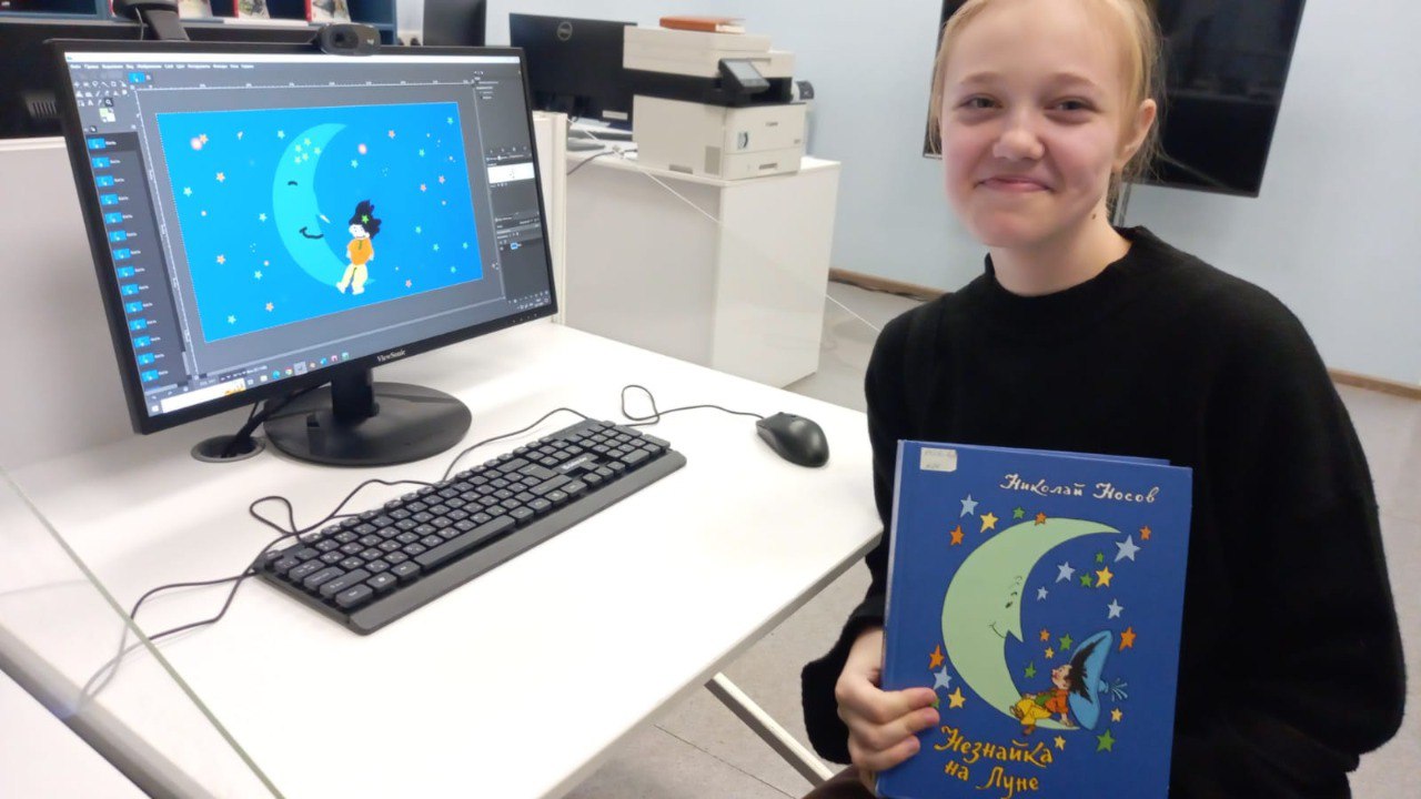 В рамках занятия по изучению графического редактора GIMP "Gimpики" юные читатели библиотеки рисовали иллюстрации к книгам про Незнайку.