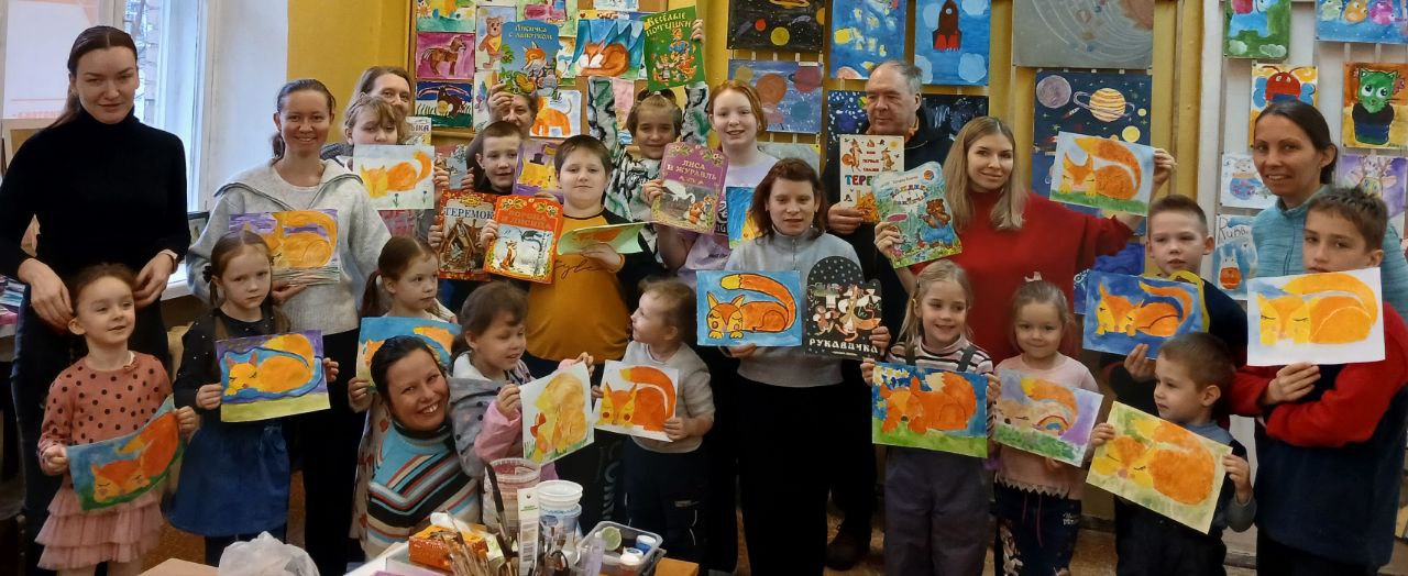 Маленькие посетители библиотеки и их родители приняли участие в литературно-художественной композиции "Лиса-плутовка". Ребята вместе с родителями вспомнили любимые сказки и литературные произведения, где главной героиней была Лиса. Затем, в технике акварели, юные художники нарисовали иллюстрацию к сказке "Лисичка с лапотком".