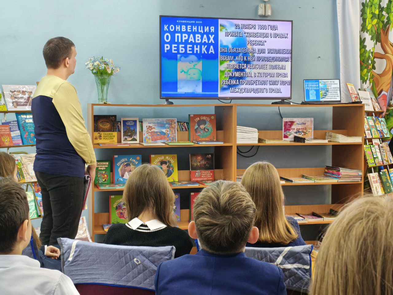 К Всемирному дню ребёнка в библиотеке для учащихся 5Б класса МБОУ СОШ № 7 прошёл урок правовых знаний "Конвенция о правах ребёнка – закон, защищающий детей". Ведущий мероприятия рассказал об истории календарной даты 20 ноября, об основных правах и обязанностях детей и о том, какими законодательными документами регулируются права ребёнка в Российской Федерации. Ребятам напомнили, что нужно не только знать и отстаивать свои права, но и ответственно относиться к своим обязанностям и помнить о своей ответственности: соблюдать Конституцию РФ, уважать государственные символы страны, заботиться о сохранности исторического и культурного наследия, бережно относиться к природе. Ребята получили знания о правах человека, о ценности человеческой жизни, о навыках правильного поведения в школе и дома, в общественных местах и на улице. А затем в игровой форме ребята приняли участие в викторине по закреплению знаний на библиотечном уроке.