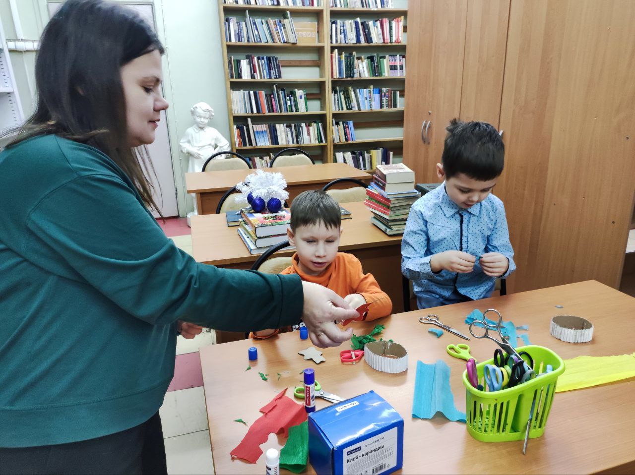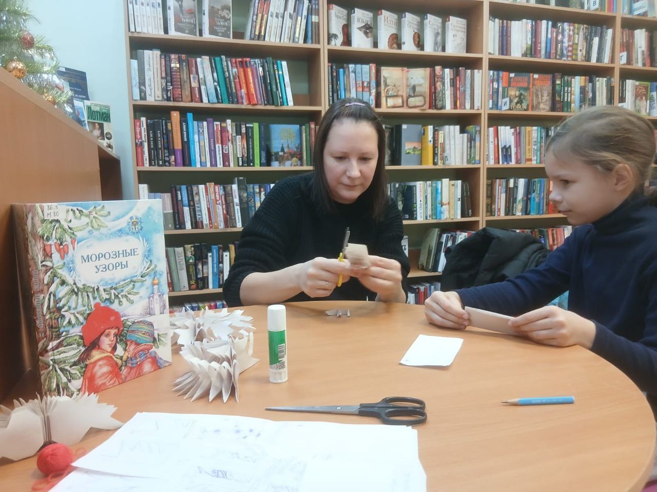 В библиотеке прошёл очередной творческий мастер-класс. Участники собрались вместе, чтобы создать уникальную новогоднюю поделку своими руками. Основной задачей было изготовление красивой и оригинальной варежки из бумаги и искусственного снега.
