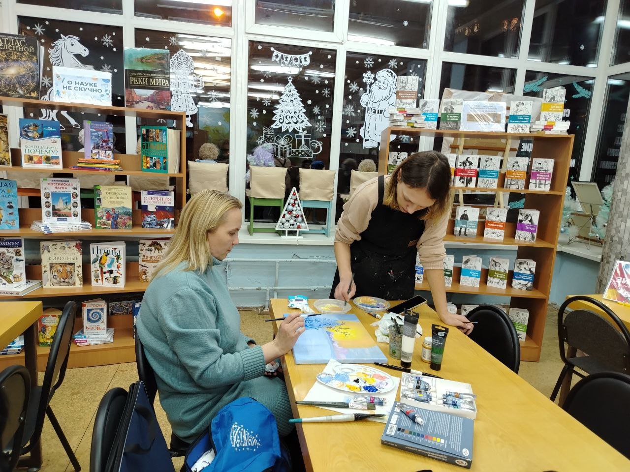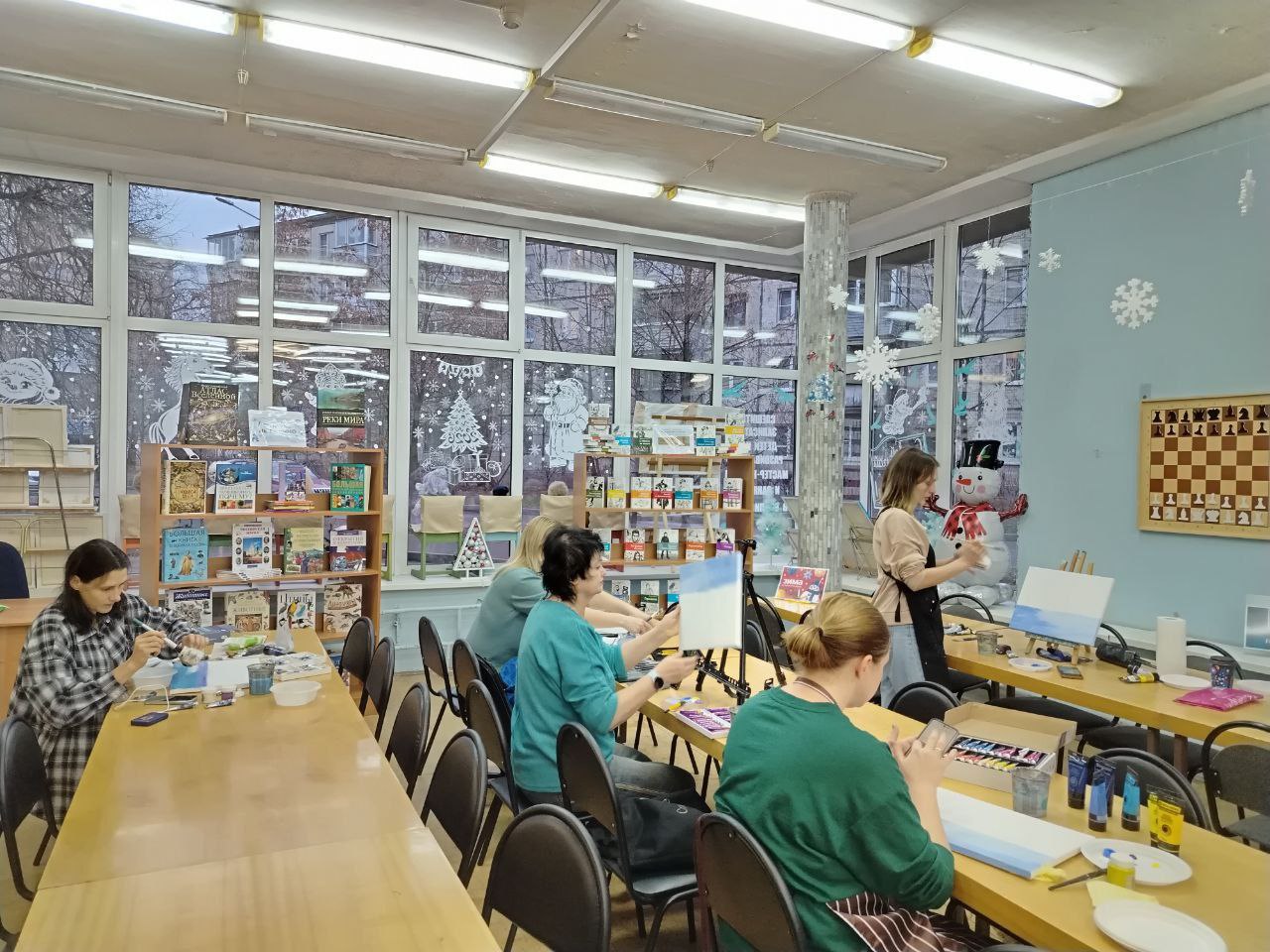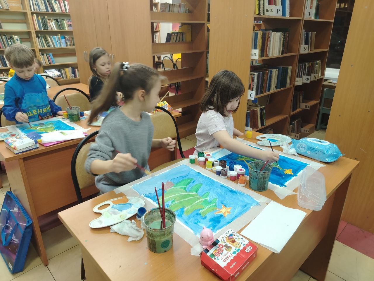 В библиотеке прошёл мастер-класс по рисованию, он был подобен медитации – тихий, светлый и невероятно умиротворяющий. Мы погрузились в самое сердце зимы, но не холодной и суровой, а нежной, мечтательной и полной надежды. Вместе с прекрасными мамами наших читателей мы учились ловить акриловыми красками первое дыхание зимнего утра. Каждая работа уникальна и дышит спокойствием и зимней магией.