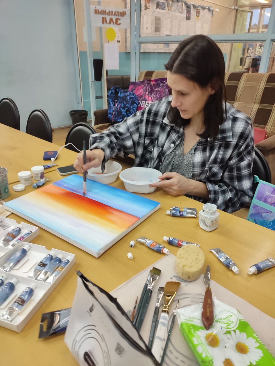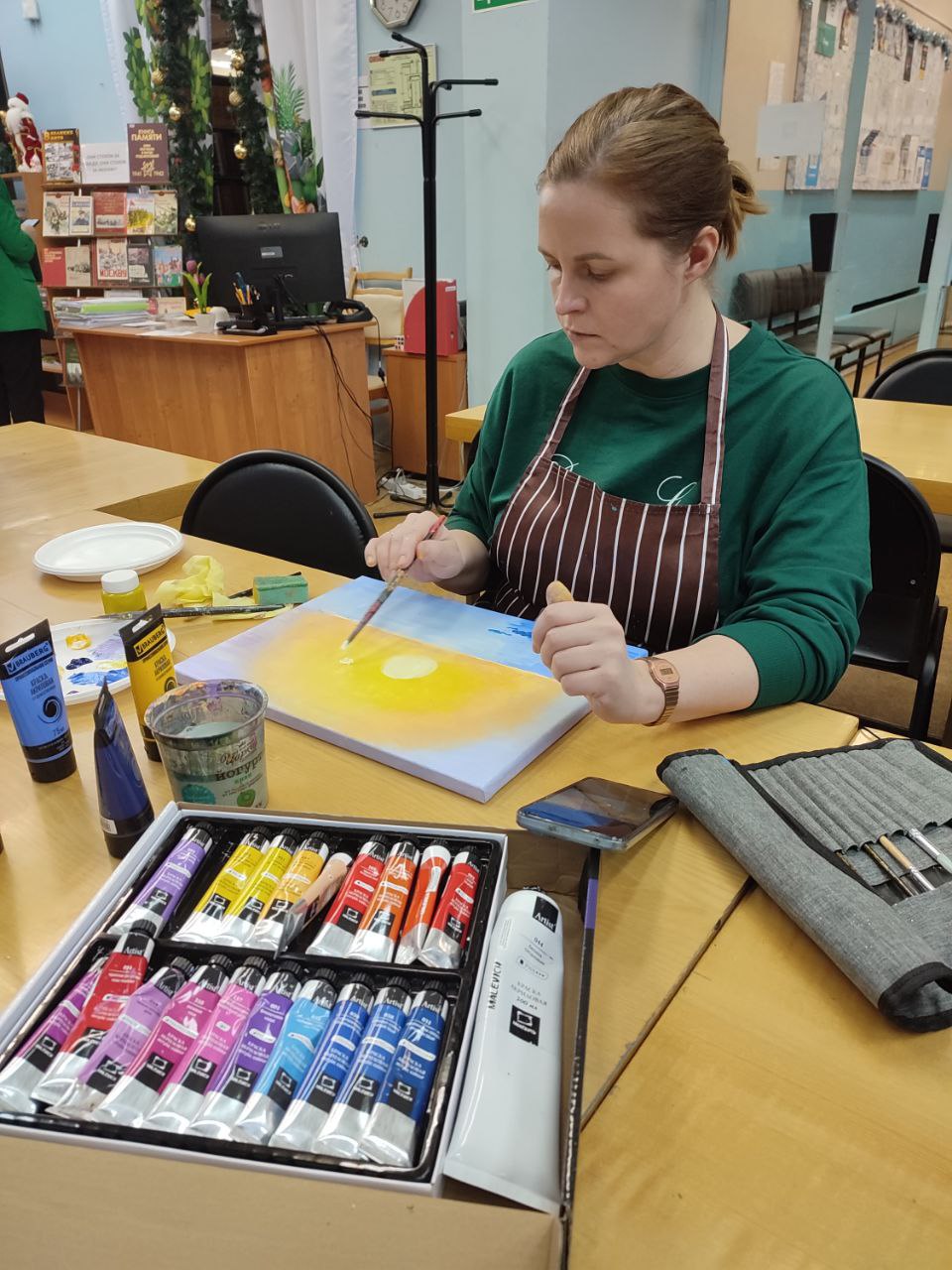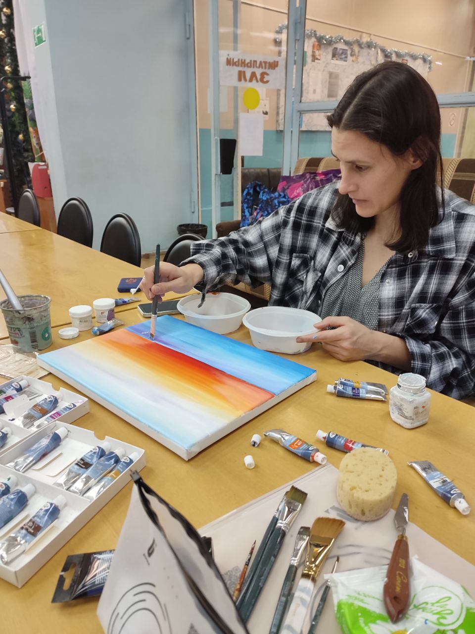 В библиотеке прошёл мастер-класс по рисованию, он был подобен медитации – тихий, светлый и невероятно умиротворяющий. Мы погрузились в самое сердце зимы, но не холодной и суровой, а нежной, мечтательной и полной надежды. Вместе с прекрасными мамами наших читателей мы учились ловить акриловыми красками первое дыхание зимнего утра. Каждая работа уникальна и дышит спокойствием и зимней магией.
