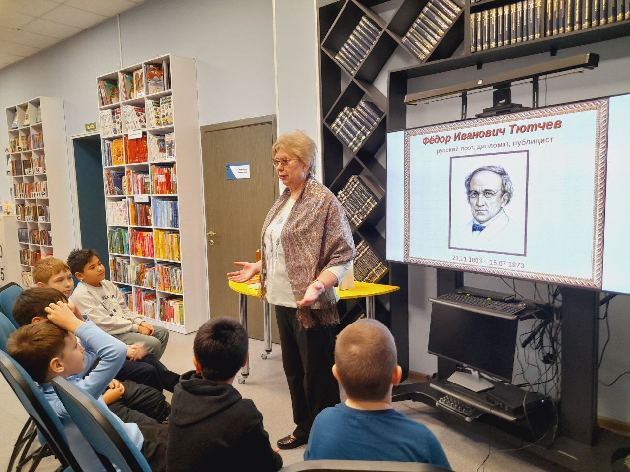 В библиотеке прошёл литературный час для любителей "Клуба "К.О.Т" (Книги. Общение. Тусовка) на тему "Волшебник поэзии", посвящённый творчеству русского поэта Фёдора Ивановича Тютчева. Сотрудник библиотеки познакомила присутствующих с жизнью и творчеством великого русского поэта. Яркие события из его биографии, прекрасные и трагические истории ребята узнали, посмотрев презентацию. Одна из главных тем в его творчестве – тема природы. Ребята читали вслух знакомые стихи "Люблю грозу в начале мая...", "Зима недаром злится", "Листья". Многие строки стихотворений Ф. И. Тютчева стали крылатыми выражениями: "Умом Россию не понять...", "Чему бы жизнь нас не учила, а сердце верит в чудеса..." и др. Поэт никогда не мечтал о славе, но всегда был любимым поэтом русского народа.