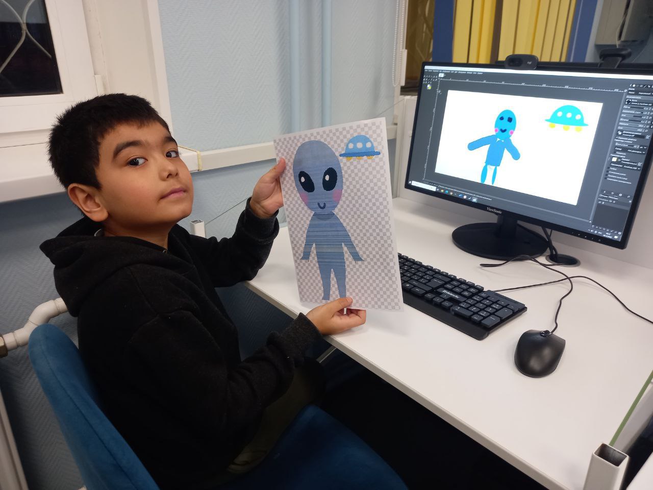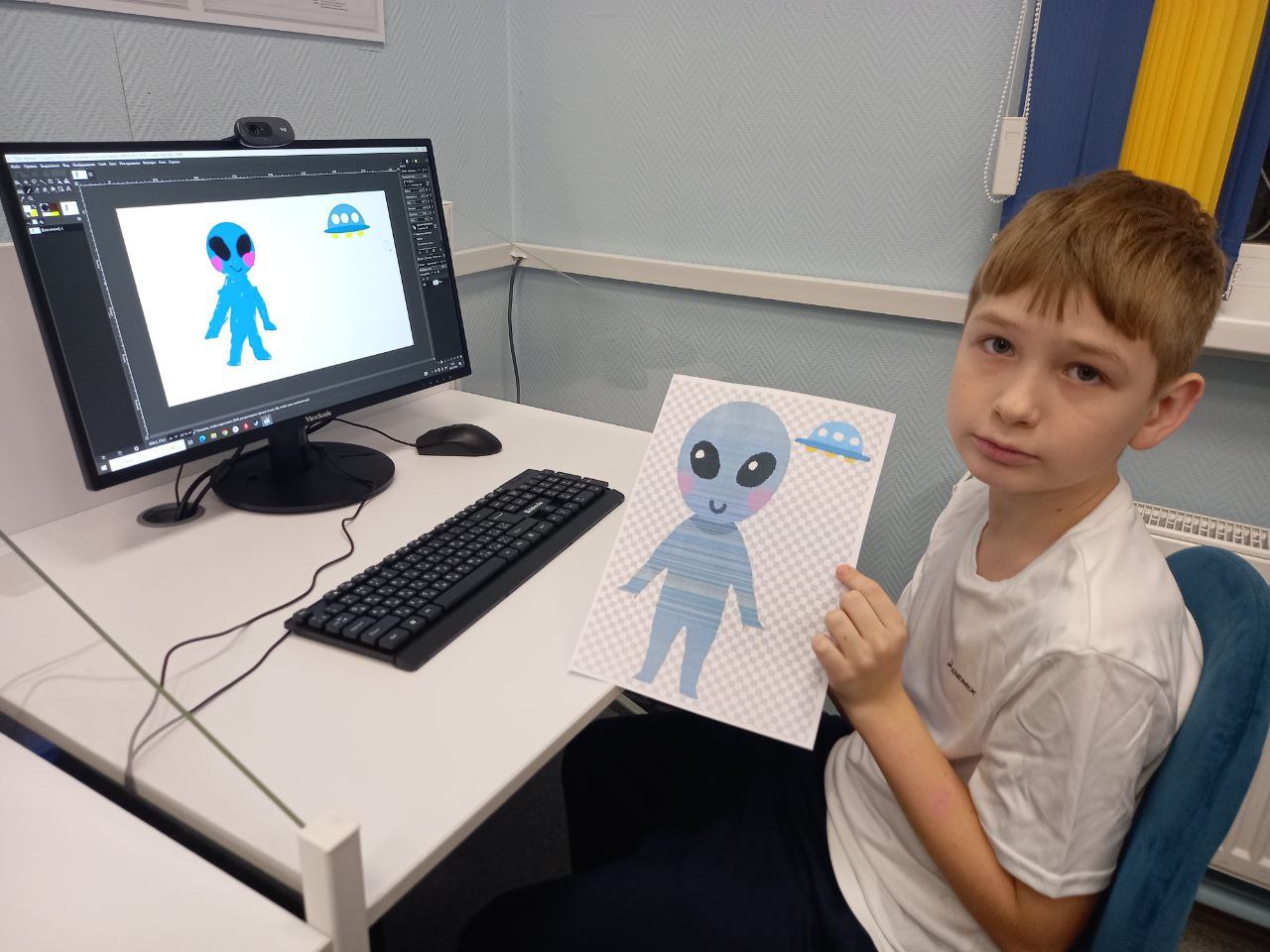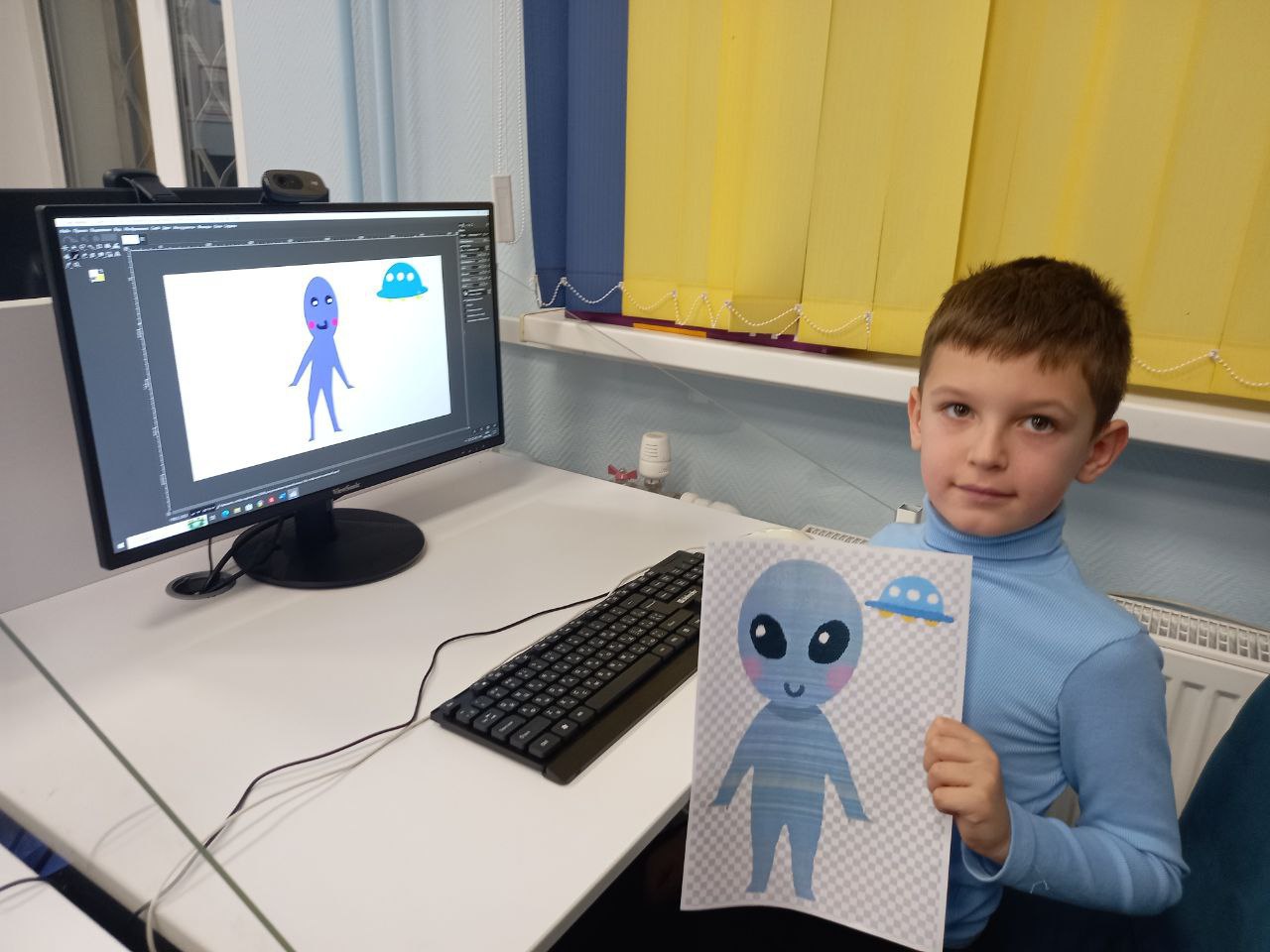В библиотеке прошло занятие курса по изучению графического редактора GIMP "Gimpики". Сотрудник библиотеки познакомил ребята с интерфейсом и простейшими инструментами программы – кистью, палитрой и выделением. Для закрепления навыков ребята нарисовали инопланетянина.