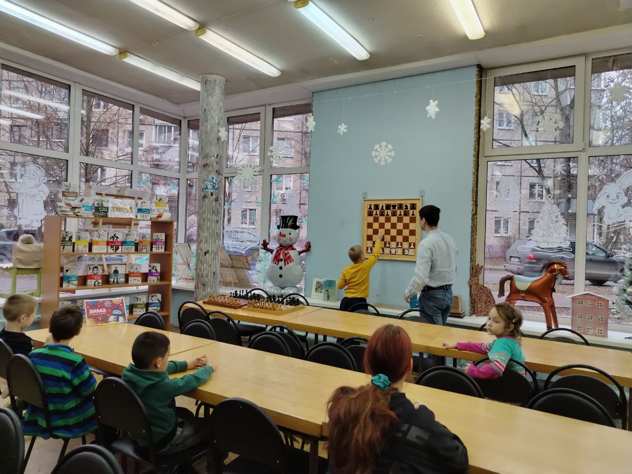 В библиотеке прошло очередное теоретическое занятие клуба любителей шахмат "Белая ладья". На этом занятии дети вспоминали о различных шахматных правилах, в том числе и о правиле "Взятие пешкой на проходе через битое поле".