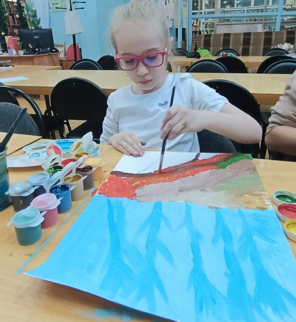 В библиотеке прошёл кружок рисования "Осенний пейзаж с дождём". Юные художники учились создавать глубину пейзажа: рисовали уходящие вдаль деревья на светлом фоне, прокладывали тропинку, ведущую глаз зрителя в картину. Ребята не только создали глубокие, атмосферные работы, но и сделали серьезный шаг в понимании законов живописи. Каждая картина стала уникальным рассказом о дождливой осени, наполненным воздухом, пространством и поэзией.