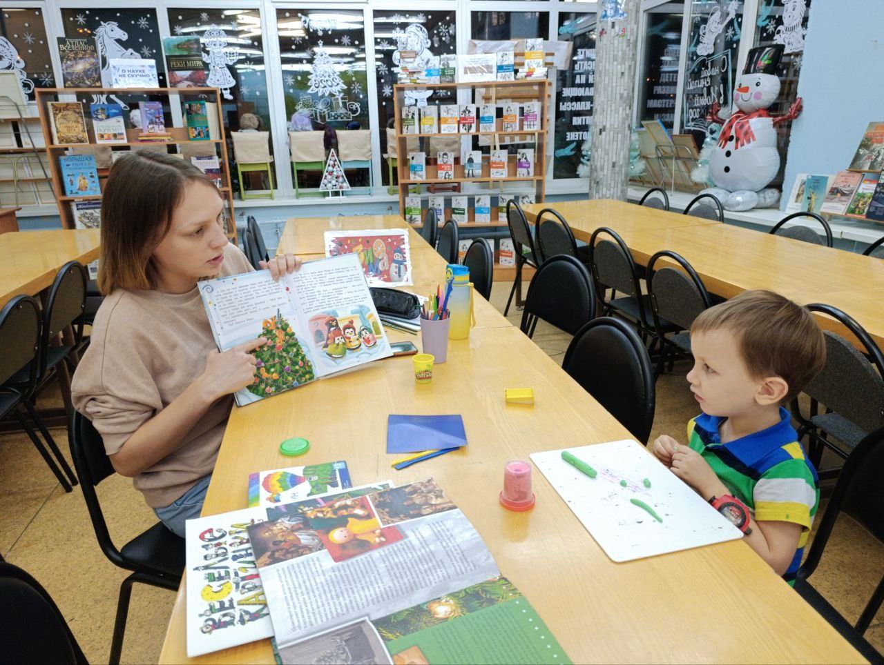 В библиотеке прошёл мастер-класс по рисованию. Наше занятие было похоже на ожившую сказку. Юные художники не просто рисовали новогоднюю ёлочку – они дарили ей душу! Эта ёлочка не просто стоит в лесу – она улыбается, подмигивает огонькам гирлянд и ждёт, когда же наступит волшебная ночь. Спасибо нашим маленьким волшебникам за этот кусочек ожившего праздника!