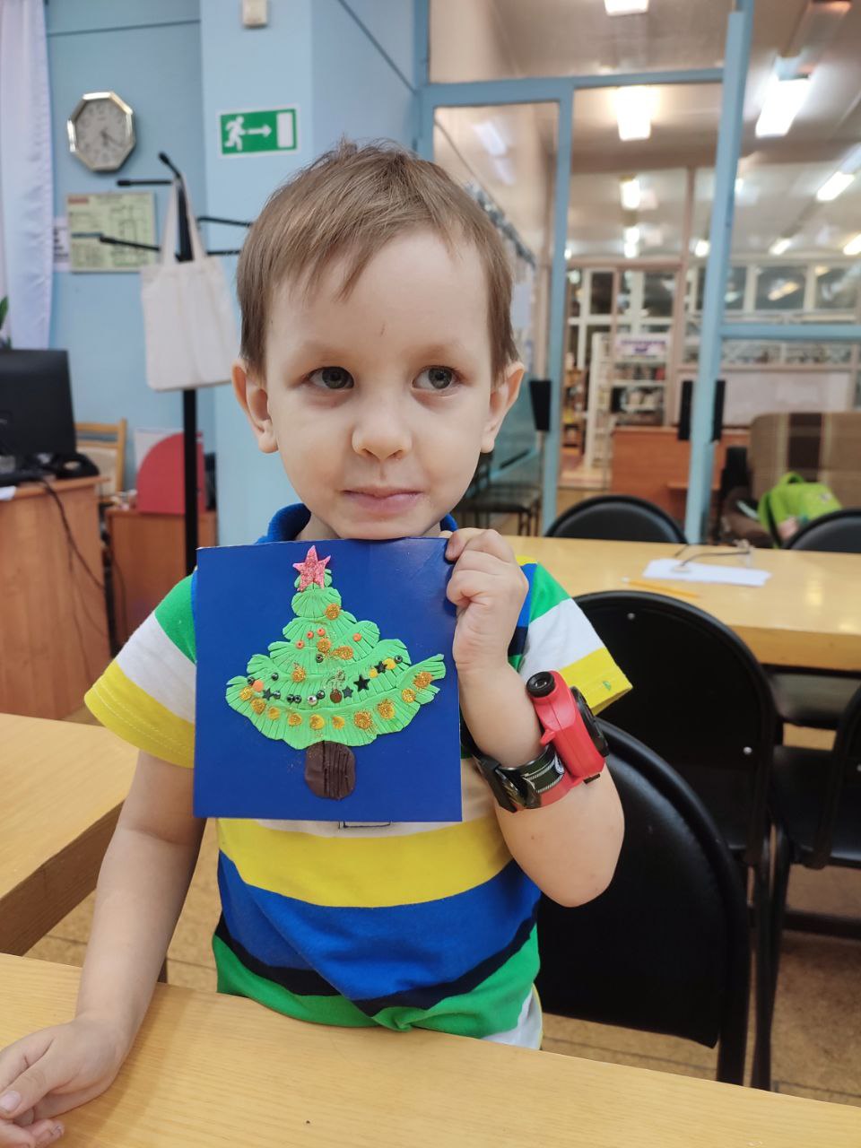 В библиотеке прошёл кружок по лепке "Сияющая новогодняя ёлочка". На занятии юные художники создавали волшебную новогоднюю картину. Основой стал синий картон, напоминающий зимнее ночное небо. С помощью мягкого пластилина дети освоили технику "размазывания" – они увлечённо наносили зелёный пластилин, создавая пушистые ветви красавицы-ёлки. Самым захватывающим моментом стало украшение: ребята с большим удовольствием лепили и прикрепляли разноцветные шарики-игрушки, превращая ёлку в нарядную. Не забыли и про яркую звезду на самой макушке! Финальным волшебным штрихом стало создание "сияния": дети посыпали сверкающие блёстки, от чего их работы заиграли по-настоящему праздничным светом.