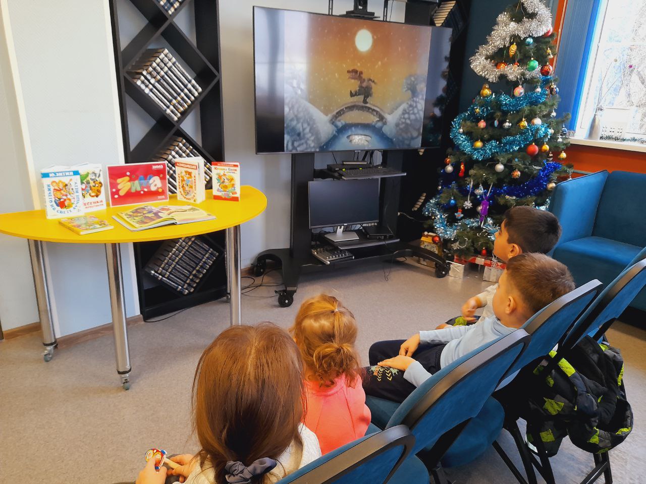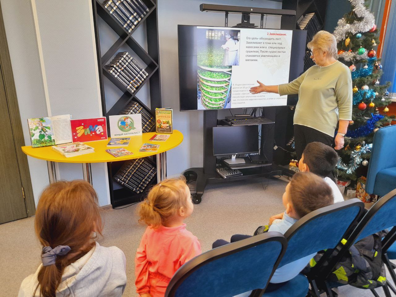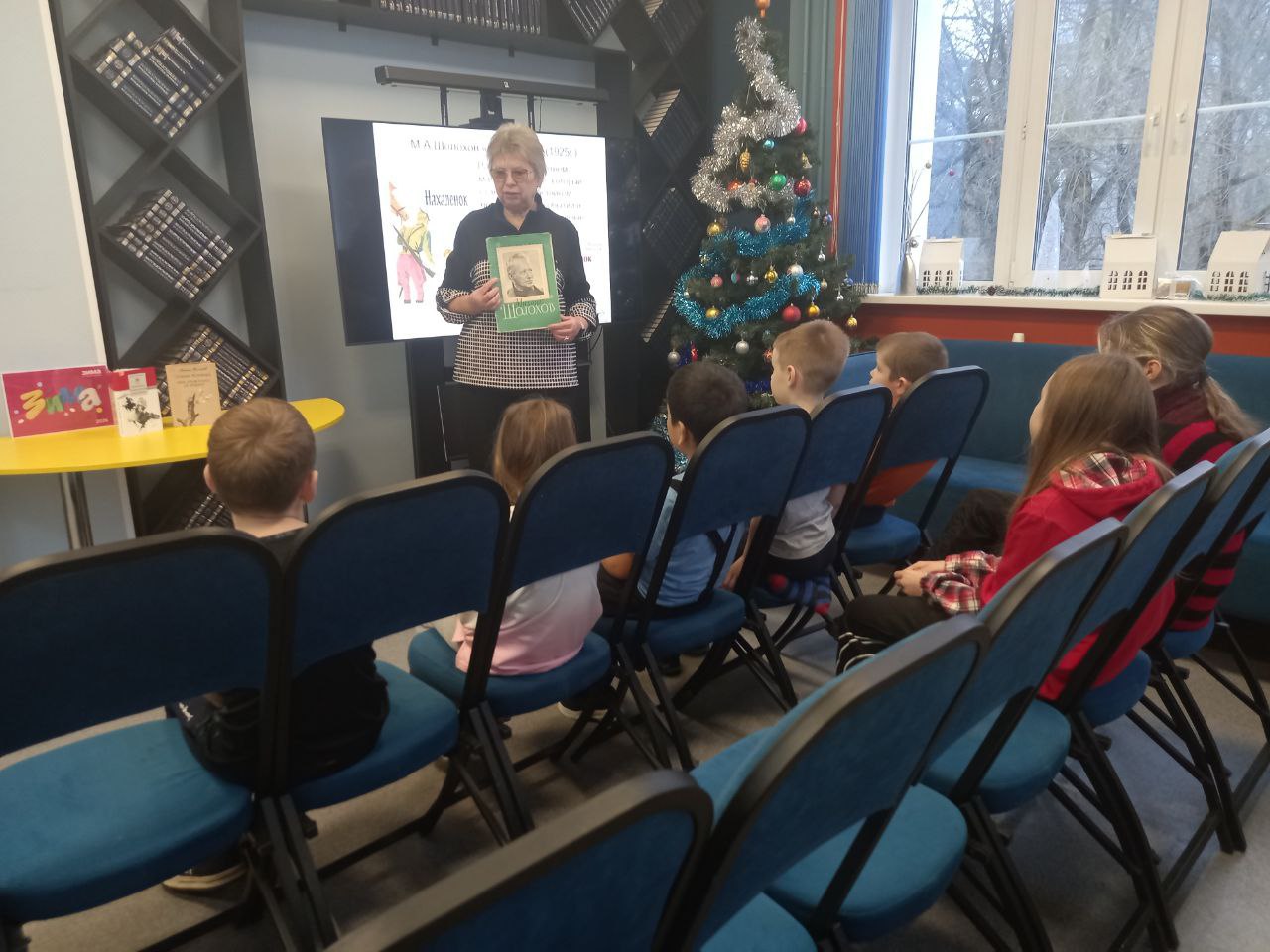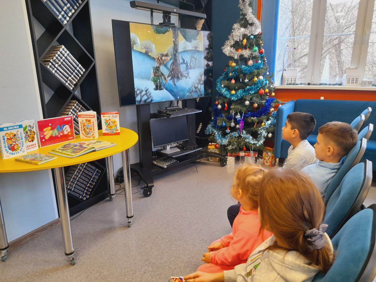 В библиотеке состоялось праздничное мероприятие в рамках "Библиовыходного". Юные читатели погрузились в атмосферу новогодних чудес, познакомившись с тематическими книгами. Сотрудники библиотеки прочитали им увлекательные зимние истории, а затем предложили загадать заветные желания на Новый год у нарядной ёлки.