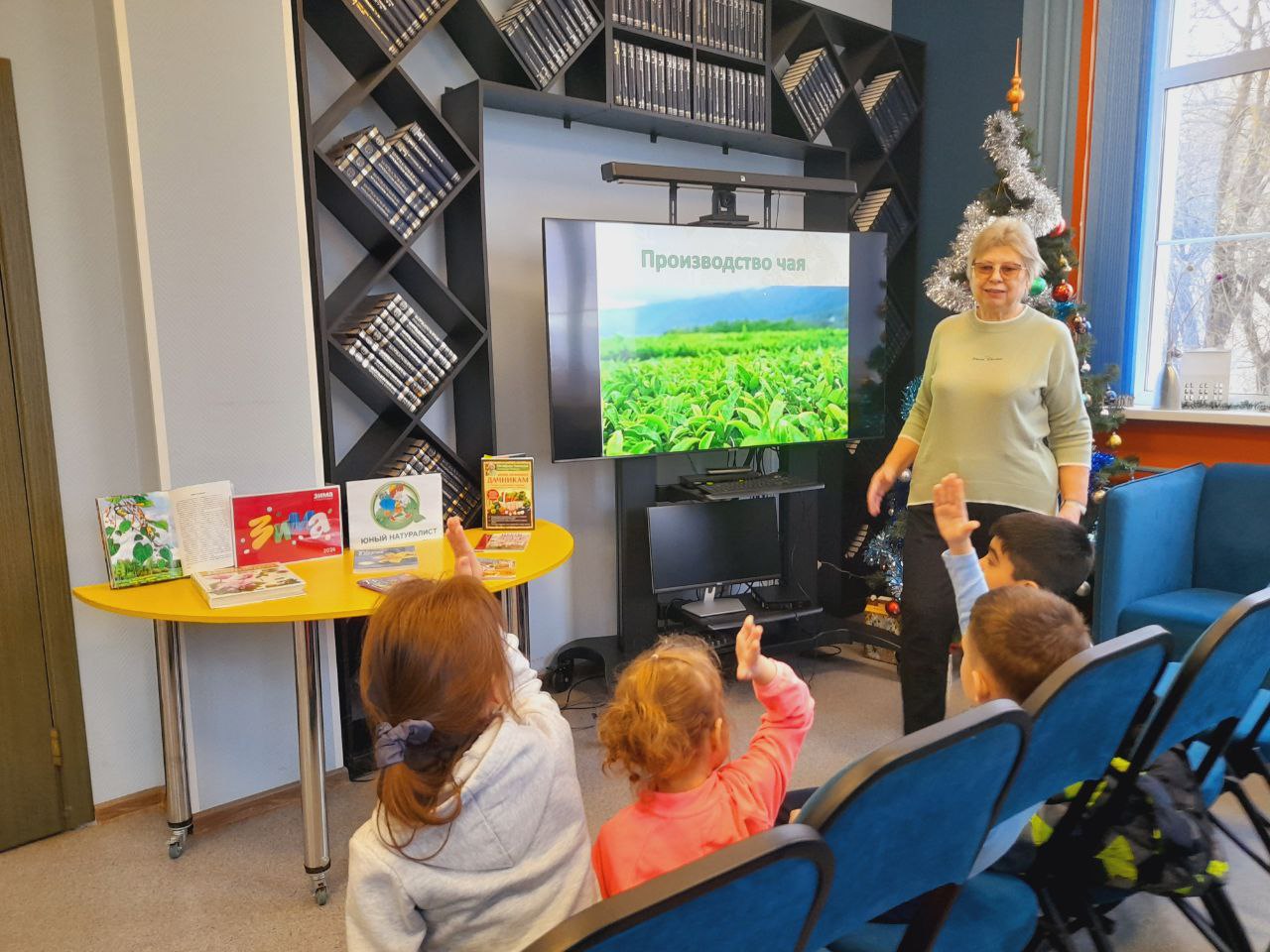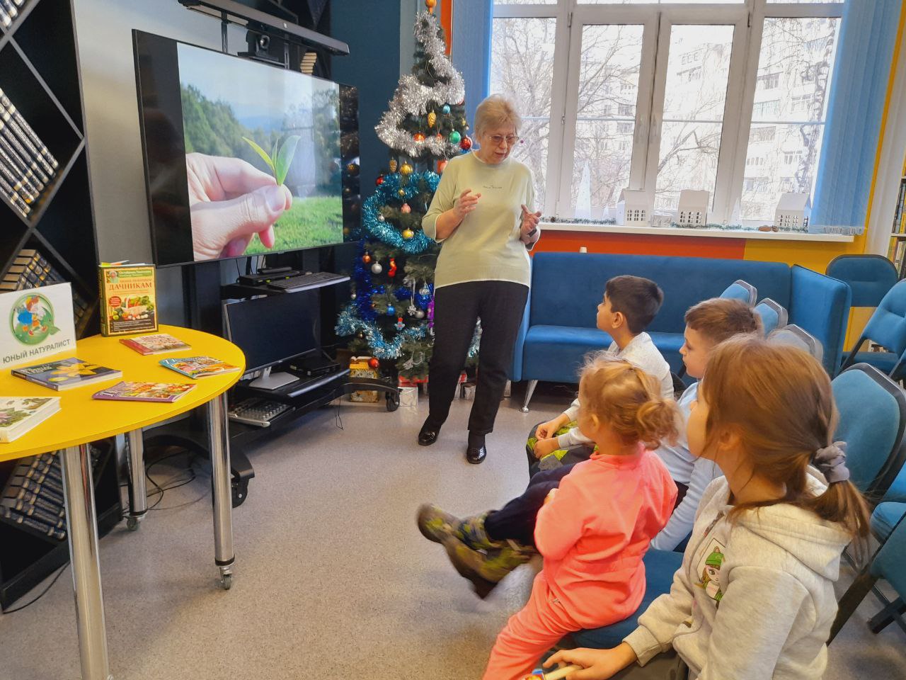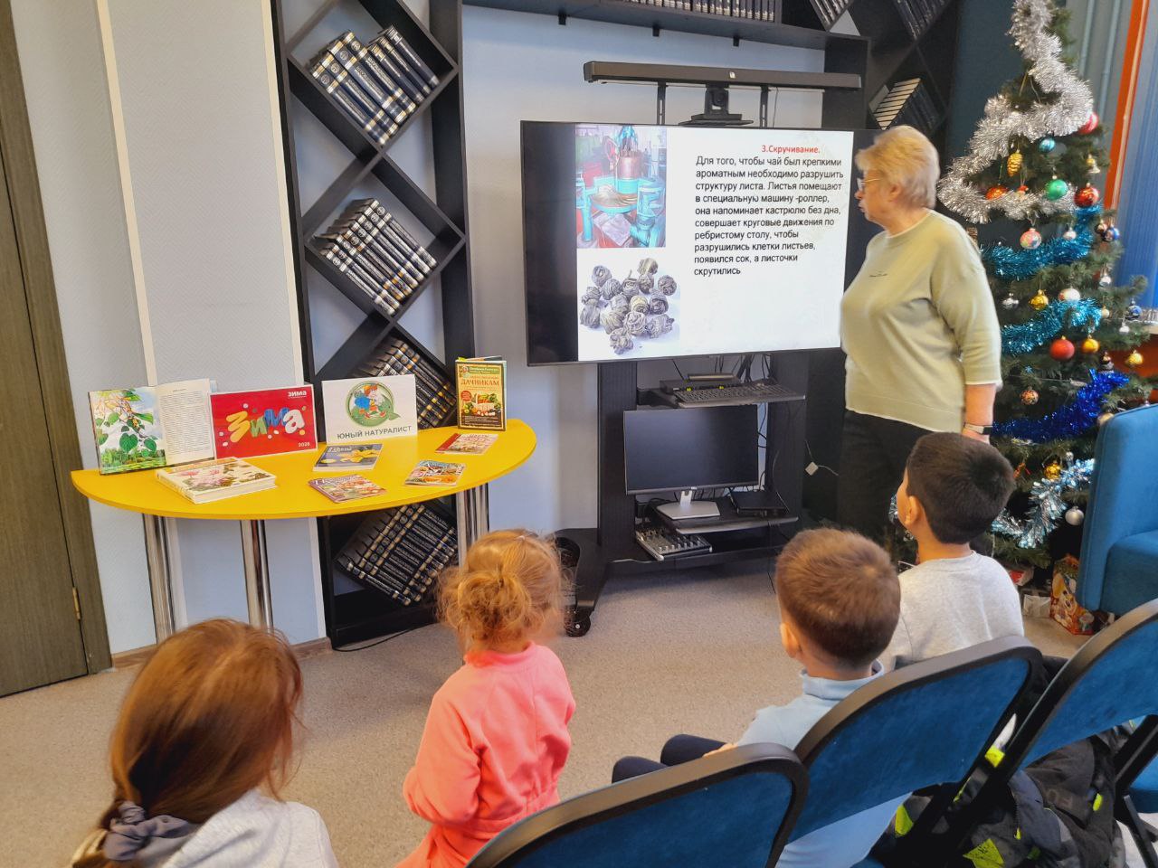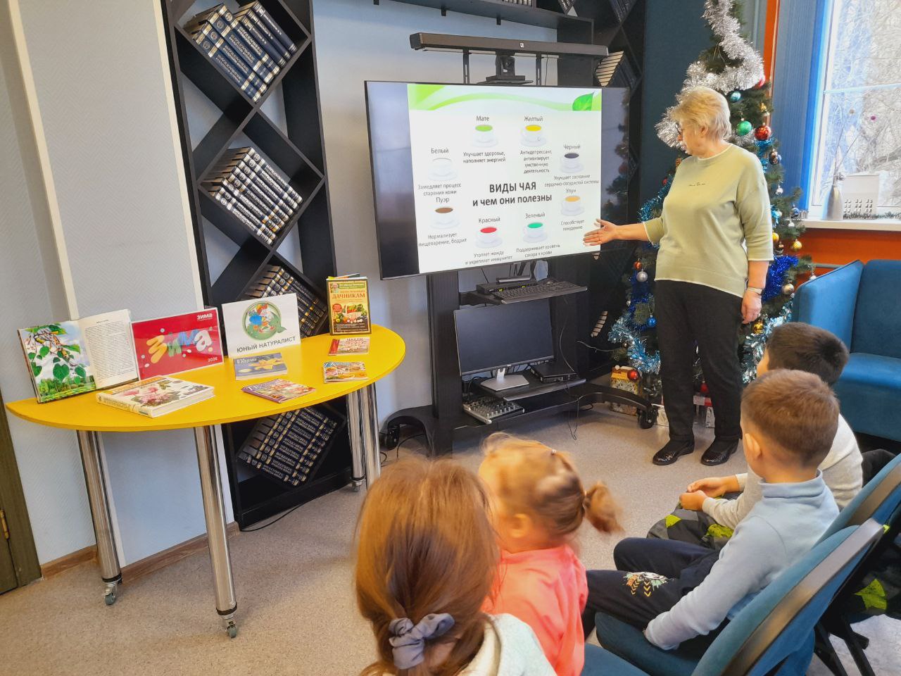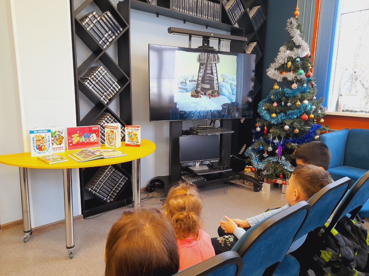 В библиотеке состоялось праздничное мероприятие в рамках "Библиовыходного". Юные читатели погрузились в атмосферу новогодних чудес, познакомившись с тематическими книгами. Сотрудники библиотеки прочитали им увлекательные зимние истории, а затем предложили загадать заветные желания на Новый год у нарядной ёлки.