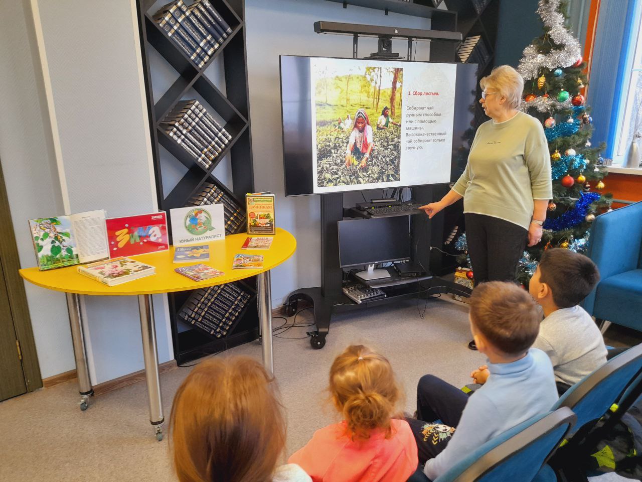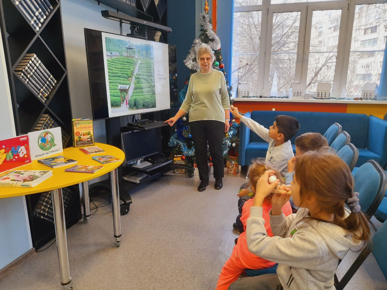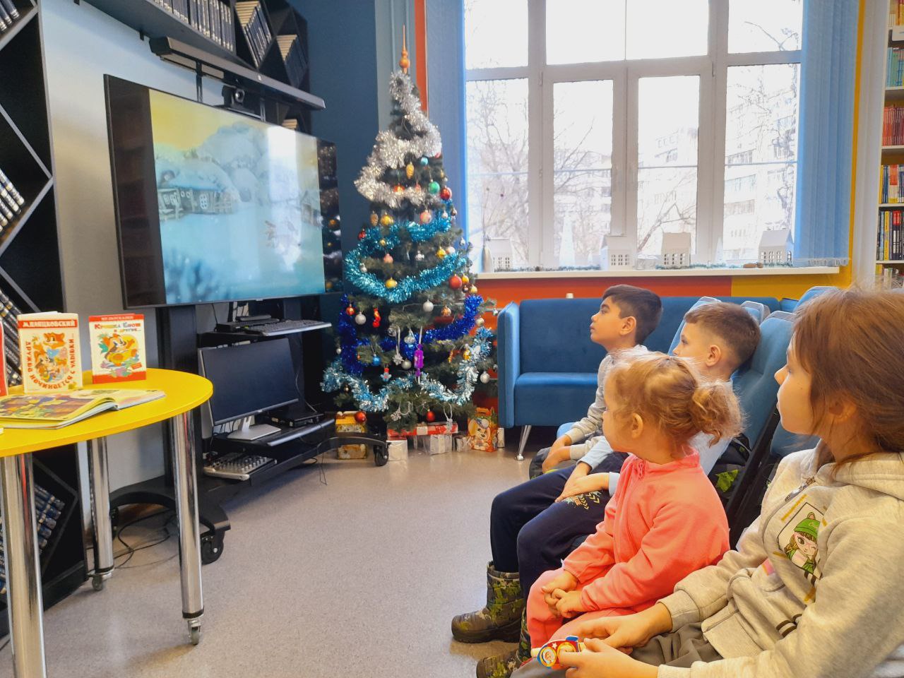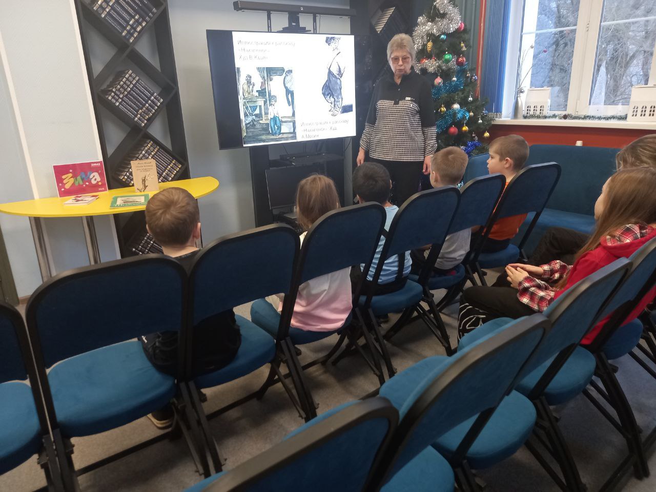 В библиотеке состоялось праздничное мероприятие в рамках "Библиовыходного". Юные читатели погрузились в атмосферу новогодних чудес, познакомившись с тематическими книгами. Сотрудники библиотеки прочитали им увлекательные зимние истории, а затем предложили загадать заветные желания на Новый год у нарядной ёлки.