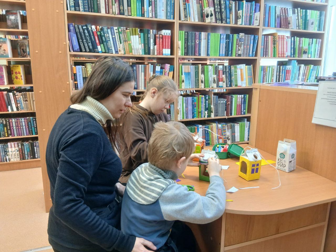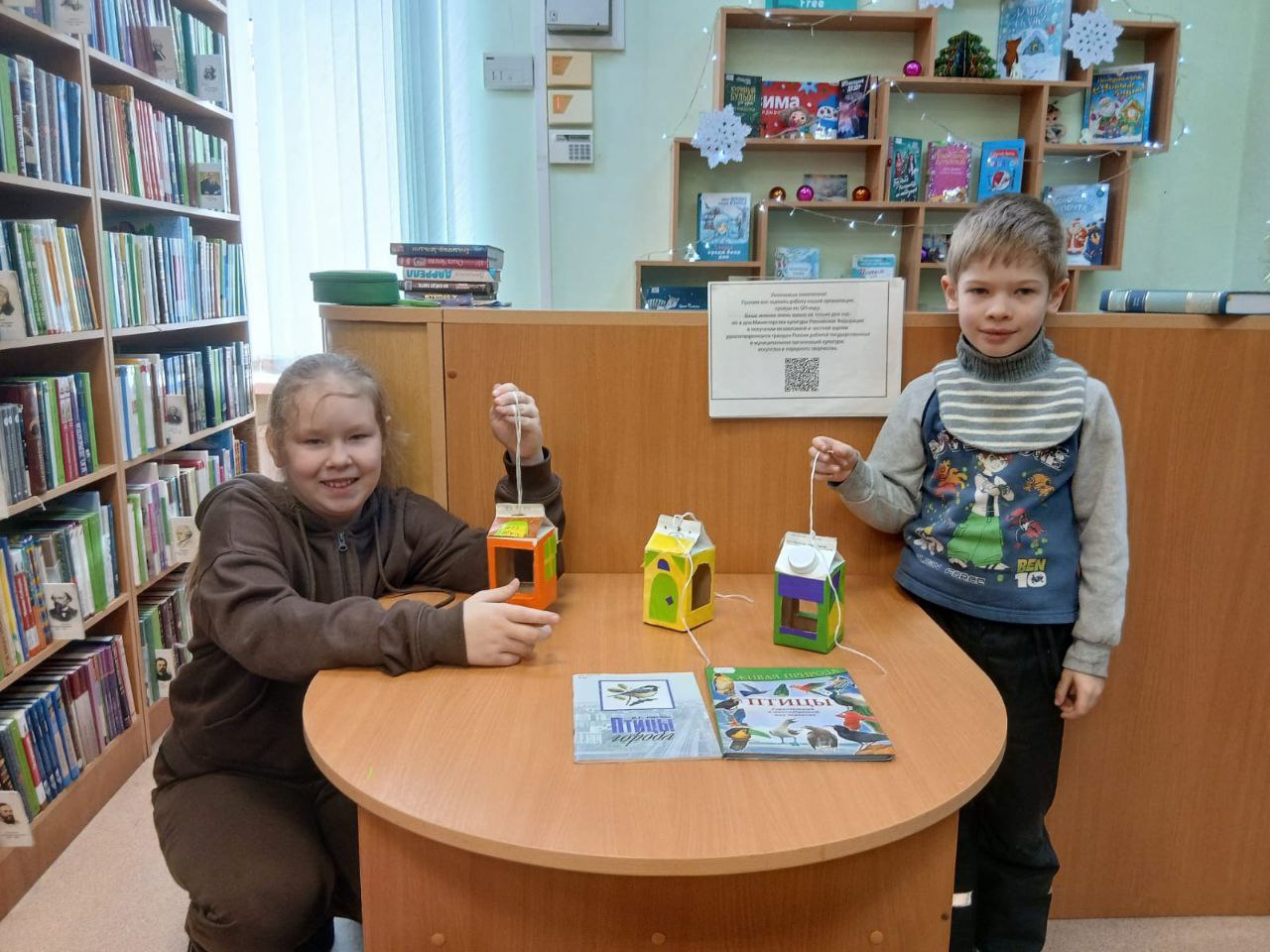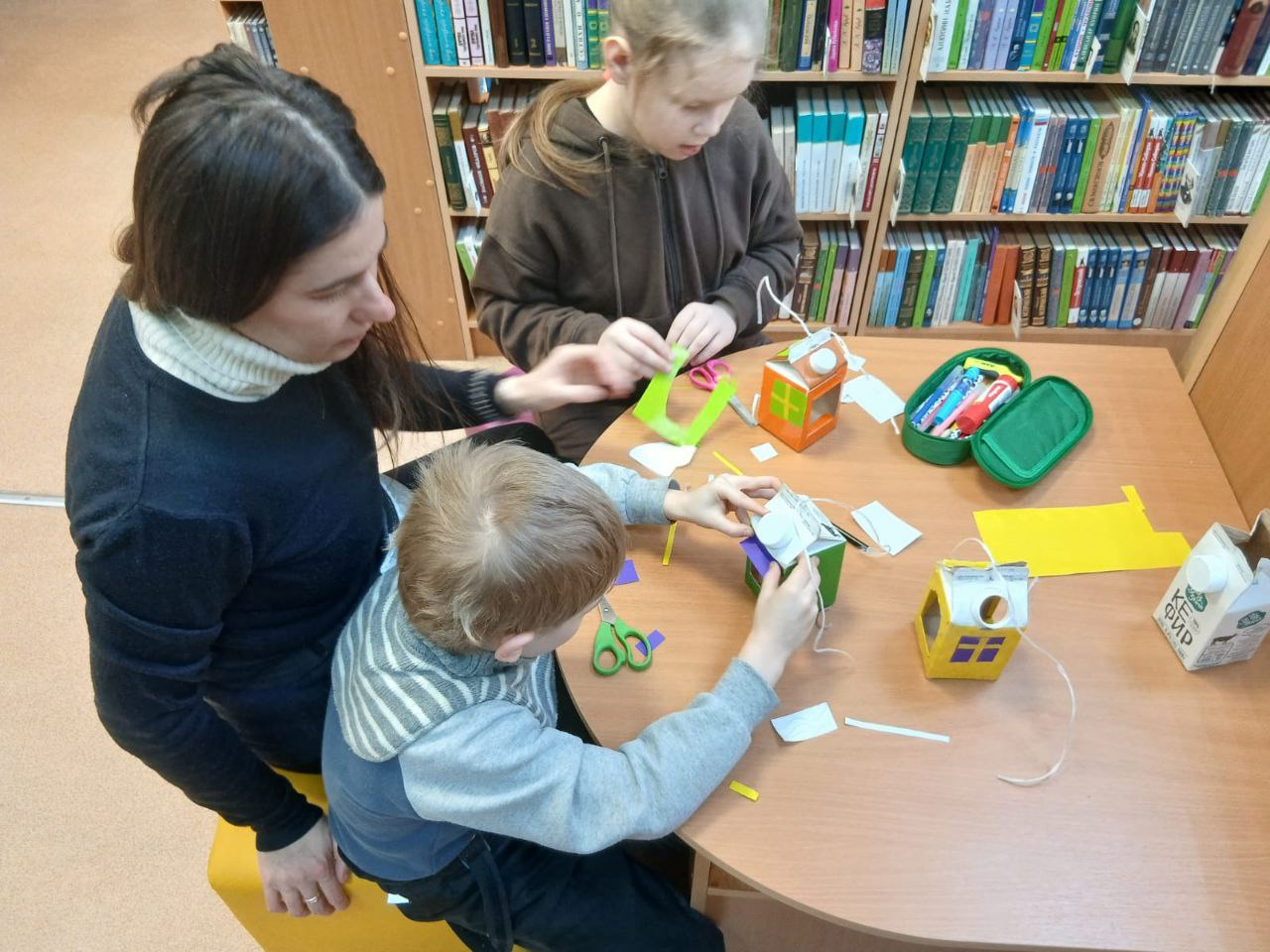 В библиотеке на занятии "Бумажной академии" участники вспоминали птиц, которых можно увидеть в городе зимой. Сотрудники библиотеки рассказали о том, как трудно пернатым найти пропитание в холодное время года, и о том, что можно класть для них в кормушки. Юные мастера сделали кормушки для мелких птиц – синиц и воробьев, похожие на домики, и пообещали регулярно класть в них семечки.