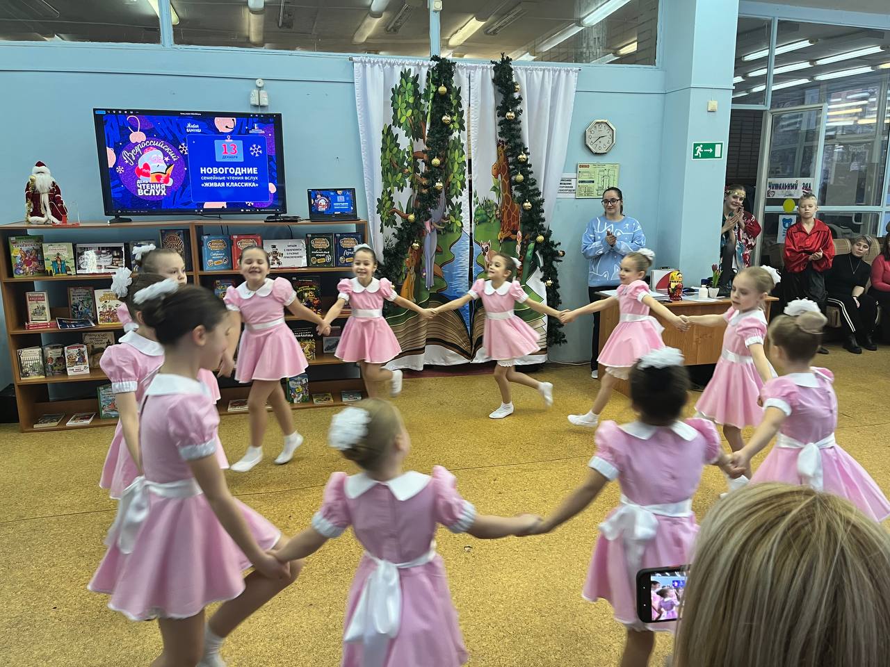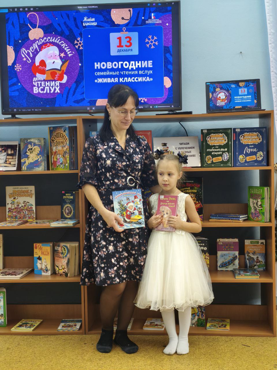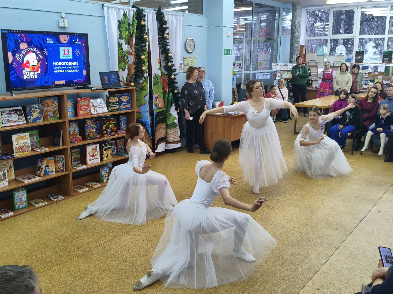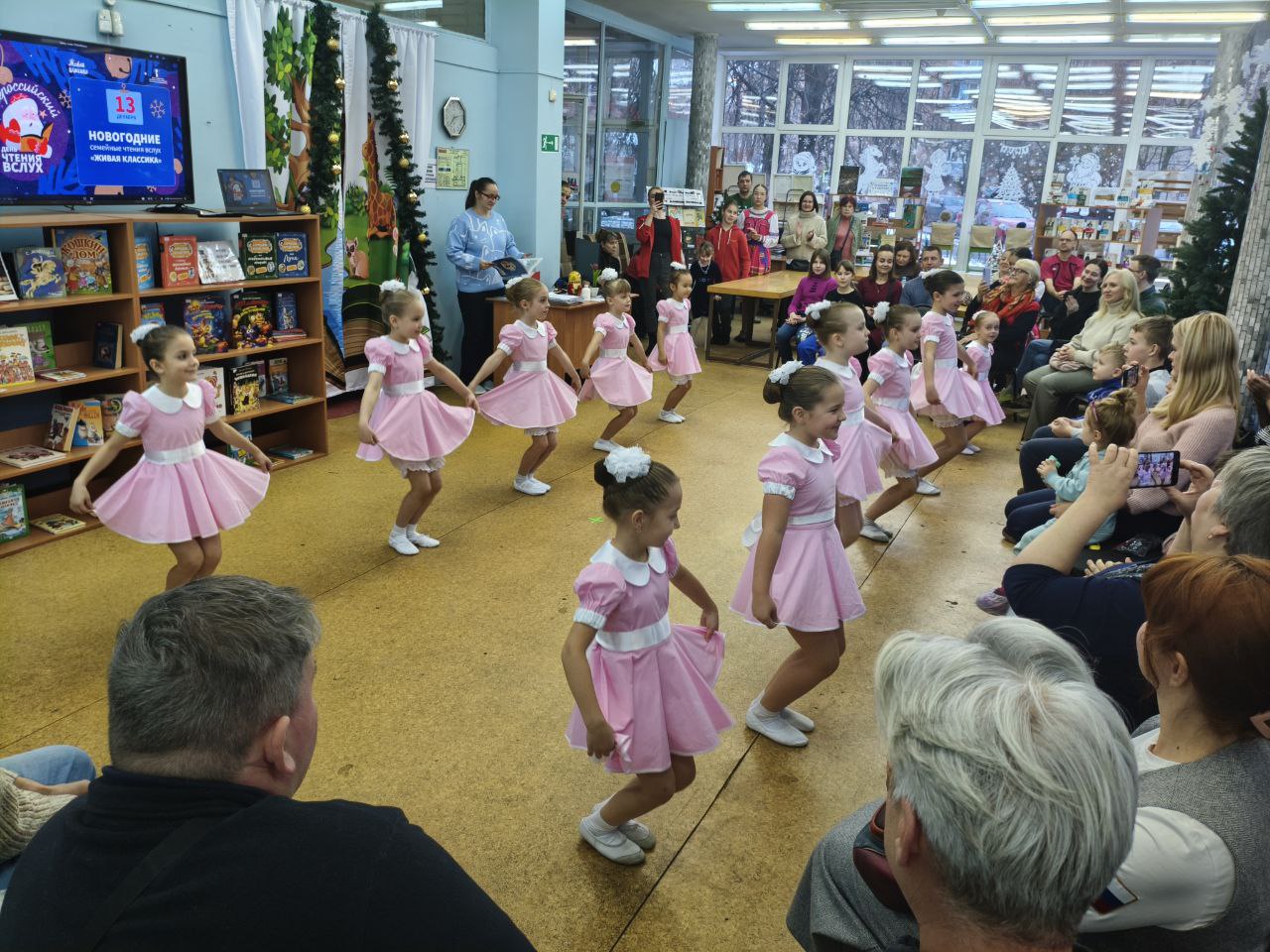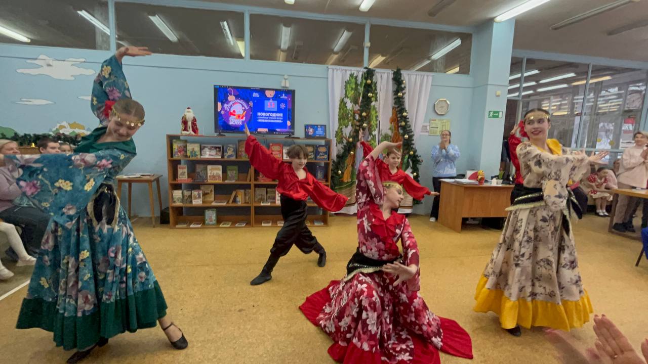 13 декабря 2025 года на территории всех субъектов Российской Федерации было запланировано проведение ежегодной просветительской Акции "Новогодние семейные чтения вслух. Живая классика". Проект, успешно реализуется при поддержке Президентского фонда культурных инициатив и направлен на укрепление института семьи, популяризацию классической отечественной и зарубежной литературы, а также формирование новой семейной традиции в России, приуроченной к празднованию Нового года. Библиотека выступила как дополнительная площадка проведения акции в офлайн-формате. Участники Акции выбрали отрывок из литературного произведения и подготовили на его основе творческий номер. Мероприятие открыл Детский ансамбль народного танца "Королёнок", художественный руководитель Черкасова Елена Анатольевна. Зажигательное выступление юных талантов мгновенно наполнило мероприятие атмосферой праздника. На торжественном мероприятии гостей приветствовали автор-составитель энциклопедии "Актёры отечественного кино" Марина Кравченко и поэт Руслан Зыков, известный своим участием в создании детских книг для проекта "Прикоснись к звуку". Они поздравили всех со знаменательным событием и представили публике увлекательные отрывки из "Сказок народов России". Сердцем мероприятия стало чтение отрывков из лучших образцов детской литературы участниками акции. Затем зрителей ждал увлекательный новогодний литературный квиз и серия интервью с родителями. В ходе бесед обсуждались важные темы: традиции семейного чтения, влияние книг на формирование личности, воспитание через слово, современные литературные тенденции и многое другое. Кульминацией вечера стало выступление артистов школы классической хореографии "Балет Белоусов" под руководством Юрия Викторовича Белоусова. Их грация наполнила зал легкой морозной свежестью, оставив незабываемое впечатление. Данный формат способствует популяризации семейного чтения и досуга, развитию творческого потенциала, формированию интереса к чтению у подрастающего поколения и укреплению культурных традиций.