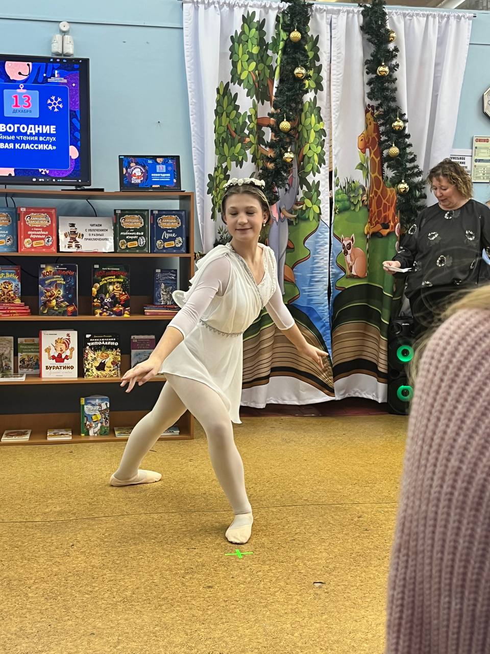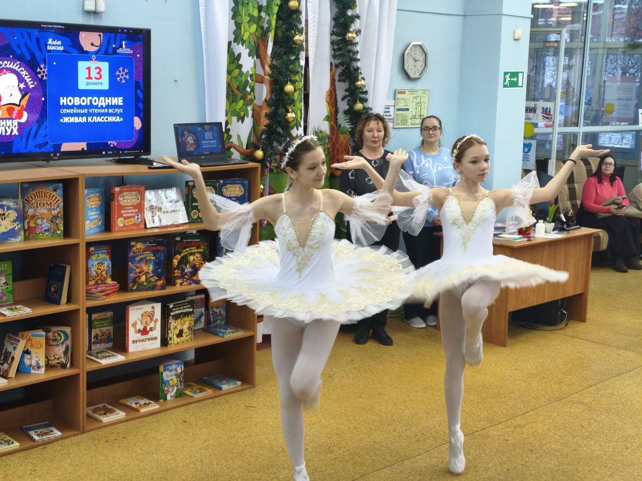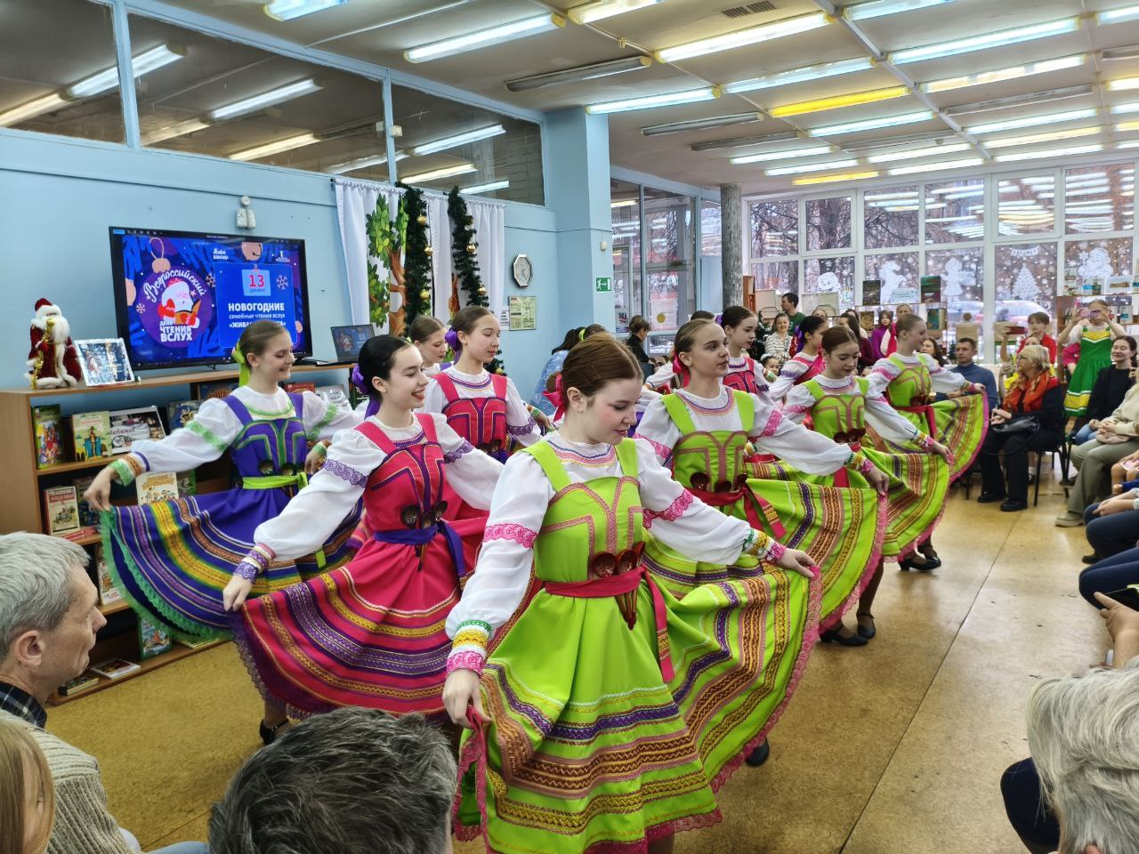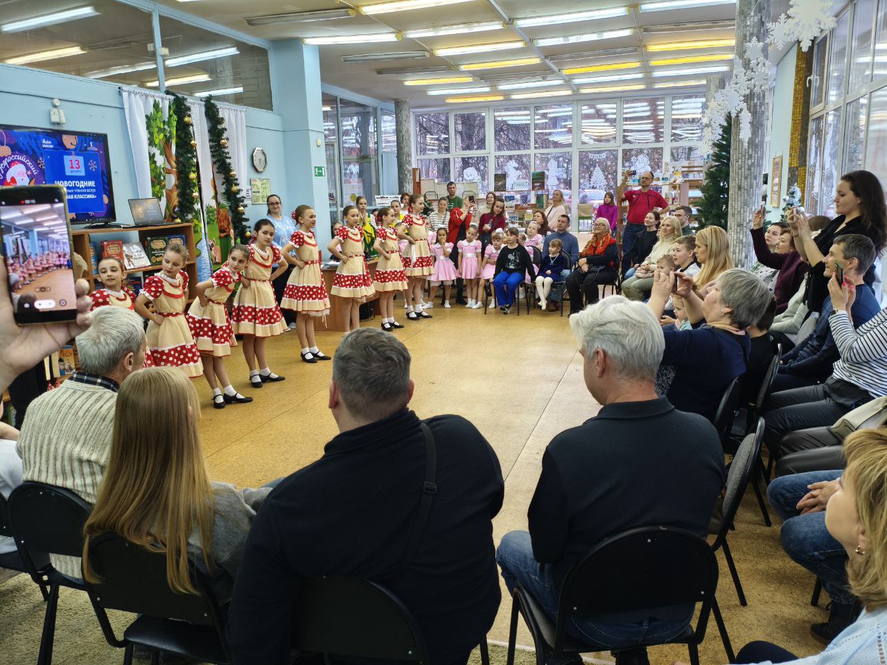 13 декабря 2025 года на территории всех субъектов Российской Федерации было запланировано проведение ежегодной просветительской Акции "Новогодние семейные чтения вслух. Живая классика". Проект, успешно реализуется при поддержке Президентского фонда культурных инициатив и направлен на укрепление института семьи, популяризацию классической отечественной и зарубежной литературы, а также формирование новой семейной традиции в России, приуроченной к празднованию Нового года. Библиотека выступила как дополнительная площадка проведения акции в офлайн-формате. Участники Акции выбрали отрывок из литературного произведения и подготовили на его основе творческий номер. Мероприятие открыл Детский ансамбль народного танца "Королёнок", художественный руководитель Черкасова Елена Анатольевна. Зажигательное выступление юных талантов мгновенно наполнило мероприятие атмосферой праздника. На торжественном мероприятии гостей приветствовали автор-составитель энциклопедии "Актёры отечественного кино" Марина Кравченко и поэт Руслан Зыков, известный своим участием в создании детских книг для проекта "Прикоснись к звуку". Они поздравили всех со знаменательным событием и представили публике увлекательные отрывки из "Сказок народов России". Сердцем мероприятия стало чтение отрывков из лучших образцов детской литературы участниками акции. Затем зрителей ждал увлекательный новогодний литературный квиз и серия интервью с родителями. В ходе бесед обсуждались важные темы: традиции семейного чтения, влияние книг на формирование личности, воспитание через слово, современные литературные тенденции и многое другое. Кульминацией вечера стало выступление артистов школы классической хореографии "Балет Белоусов" под руководством Юрия Викторовича Белоусова. Их грация наполнила зал легкой морозной свежестью, оставив незабываемое впечатление. Данный формат способствует популяризации семейного чтения и досуга, развитию творческого потенциала, формированию интереса к чтению у подрастающего поколения и укреплению культурных традиций.