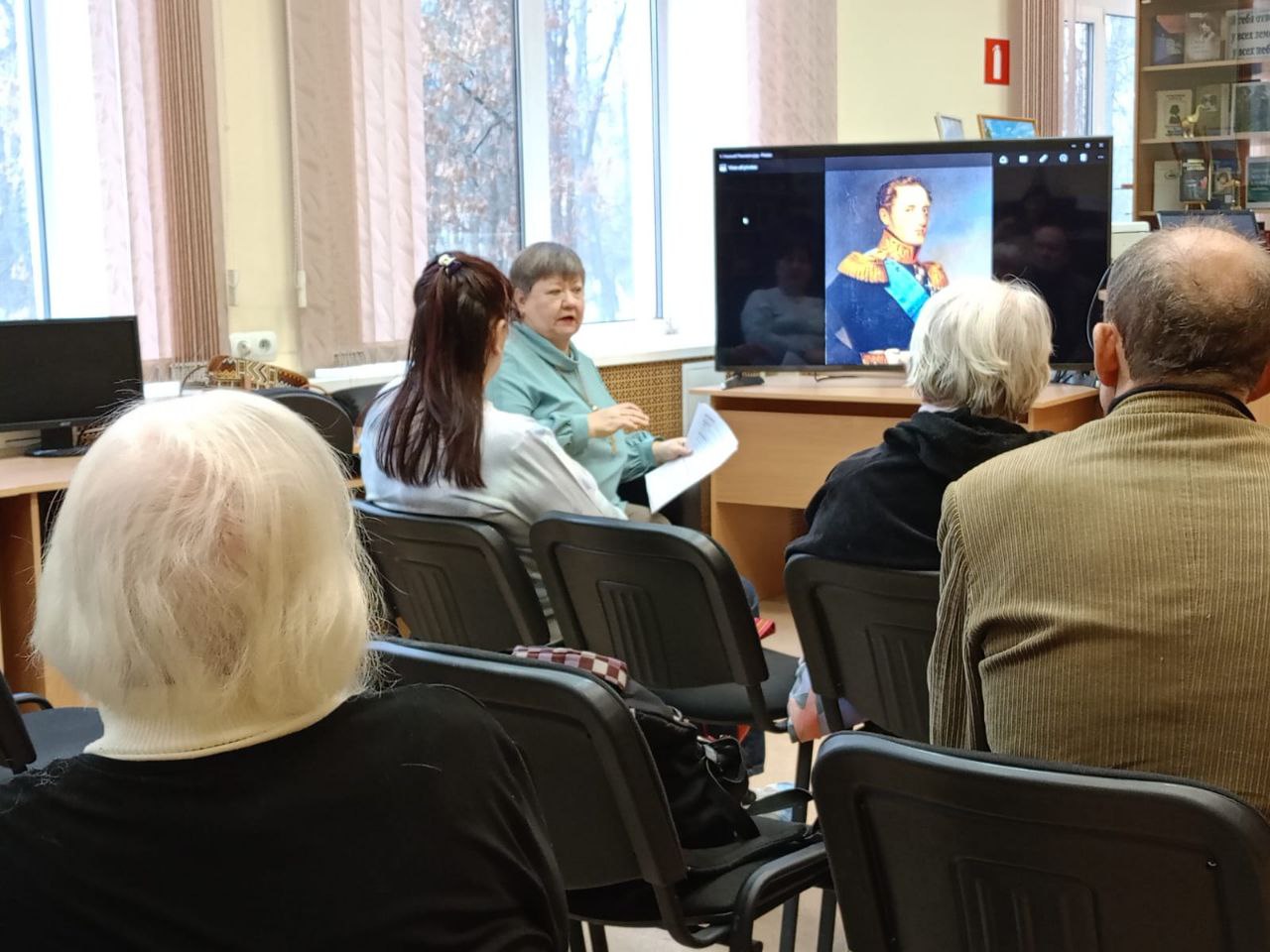 Надежда Валериевна Волкова, заведующая библиотекой, открыла мероприятие, представив слушателям поэтические произведения классиков: послание А. С. Пушкина "Во глубине сибирских руд" и ответ А. И. Одоевского "Струн вещих пламенные звуки".