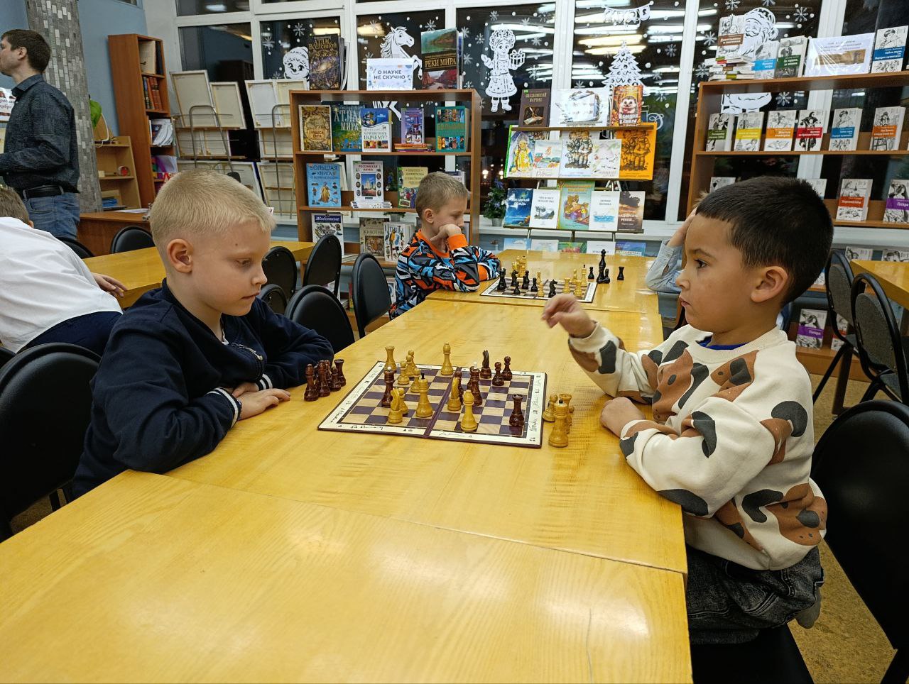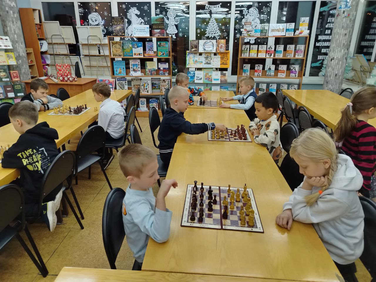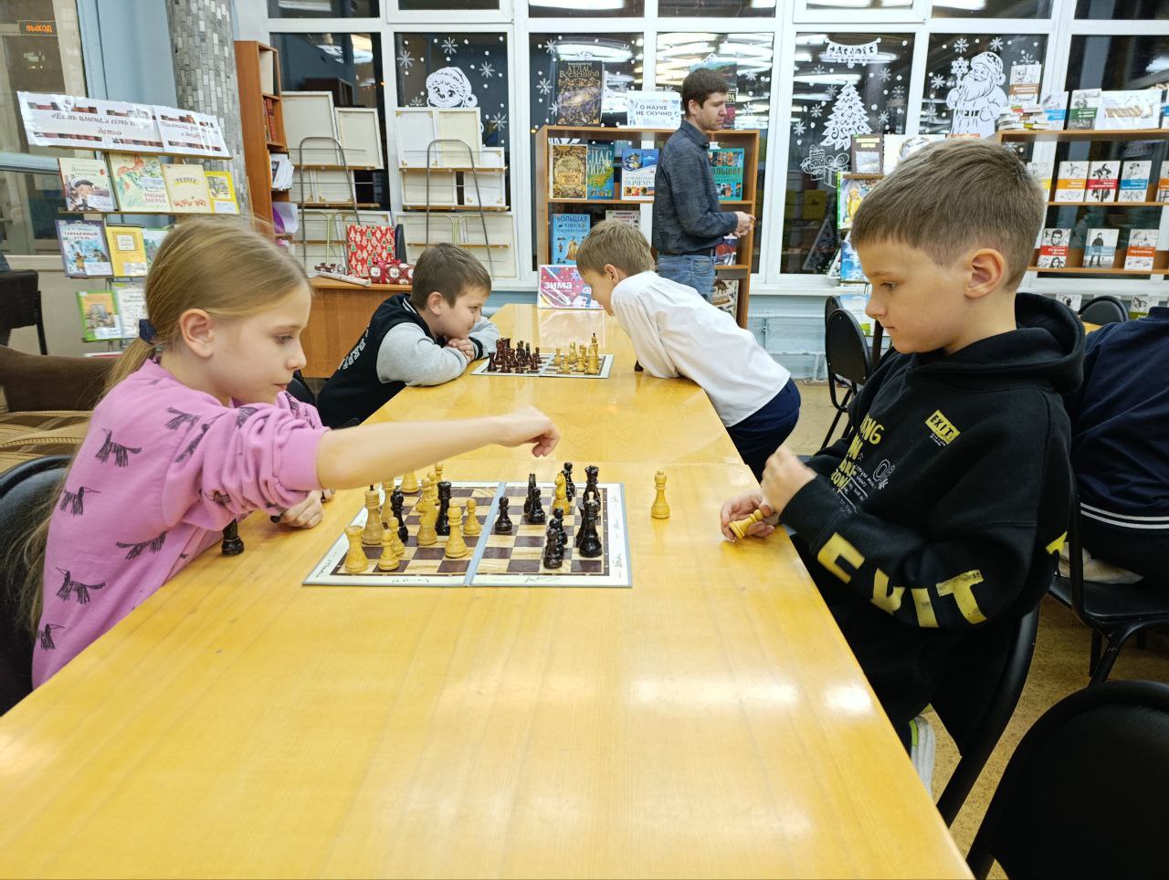 Прошло очередное занятие клуба любителей шахмат "Белая ладья". Дети разных возрастов и уровня игры приходят в библиотеку, чтобы поиграть в шахматы между собой и с пользой провести своё свободное время.