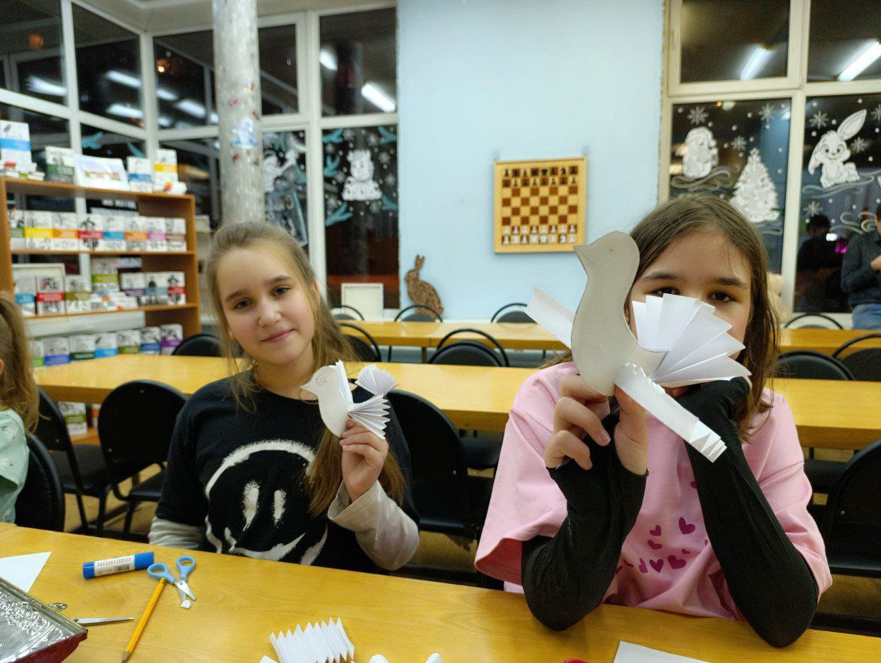 После игр, танцев и веселья девочки и мальчики принялись мастерить голубя, который является символом мира и вдохновения.