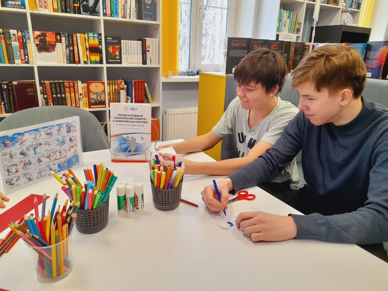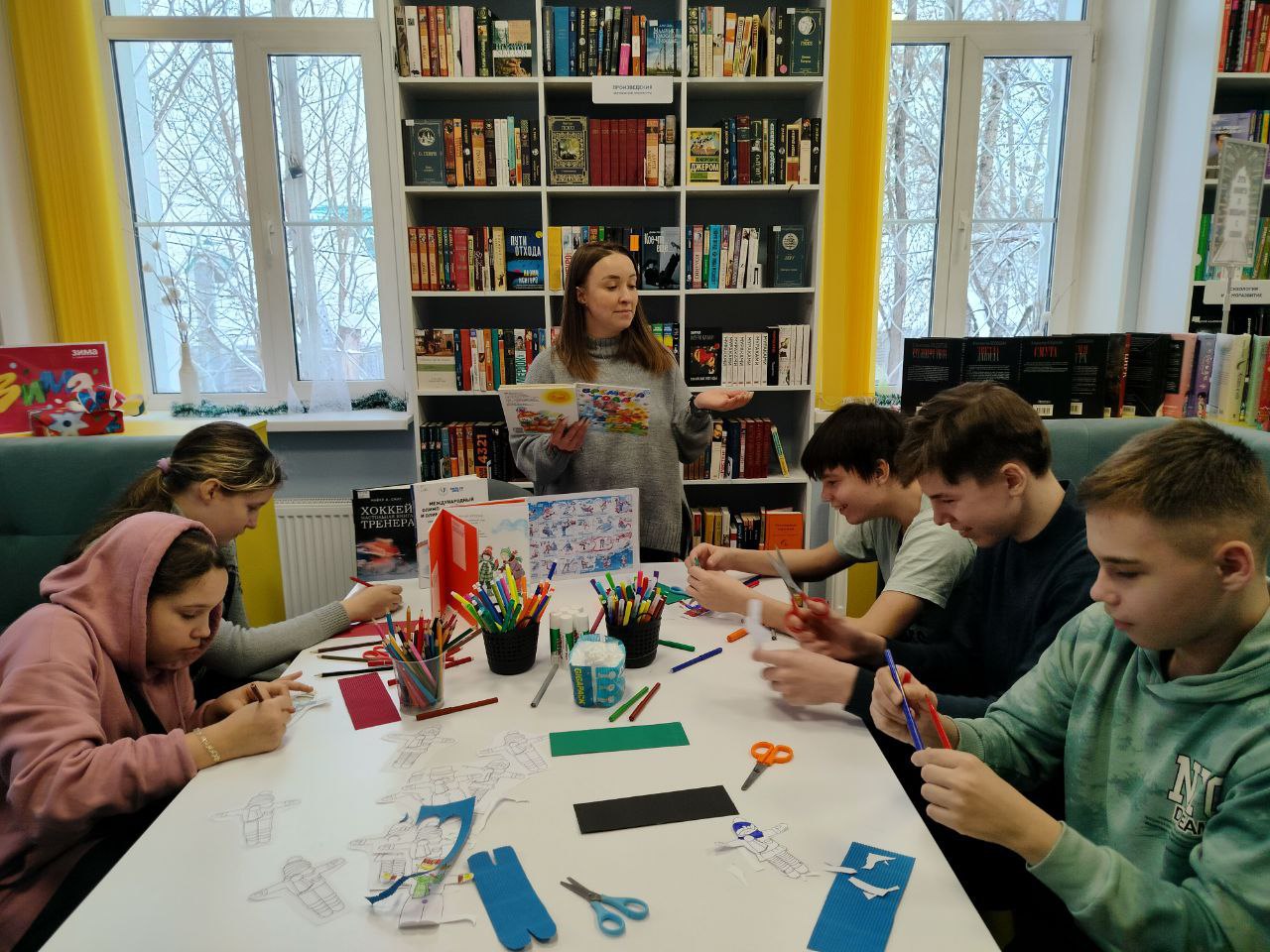В библиотеке прошёл творческий мастер-класс в рамках кружка "Мастерилка". День зимних видов спорта – один из самых новых в праздничном календаре России. Его история напрямую связана с зимней Олимпиадой в нашей стране. Любители зимних видов спорта узнали немало полезного и любопытного из книг, представленных в библиотеке: о хоккее, лыжном спорте, фигурном катании, биатлоне, конькобежном спорте. Затем гости сконструировали из цветной бумаги весёлого лыжника.