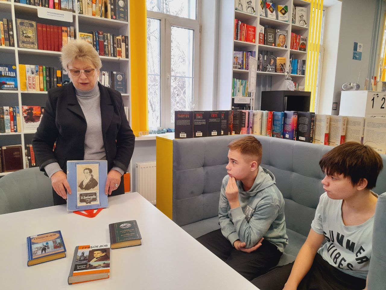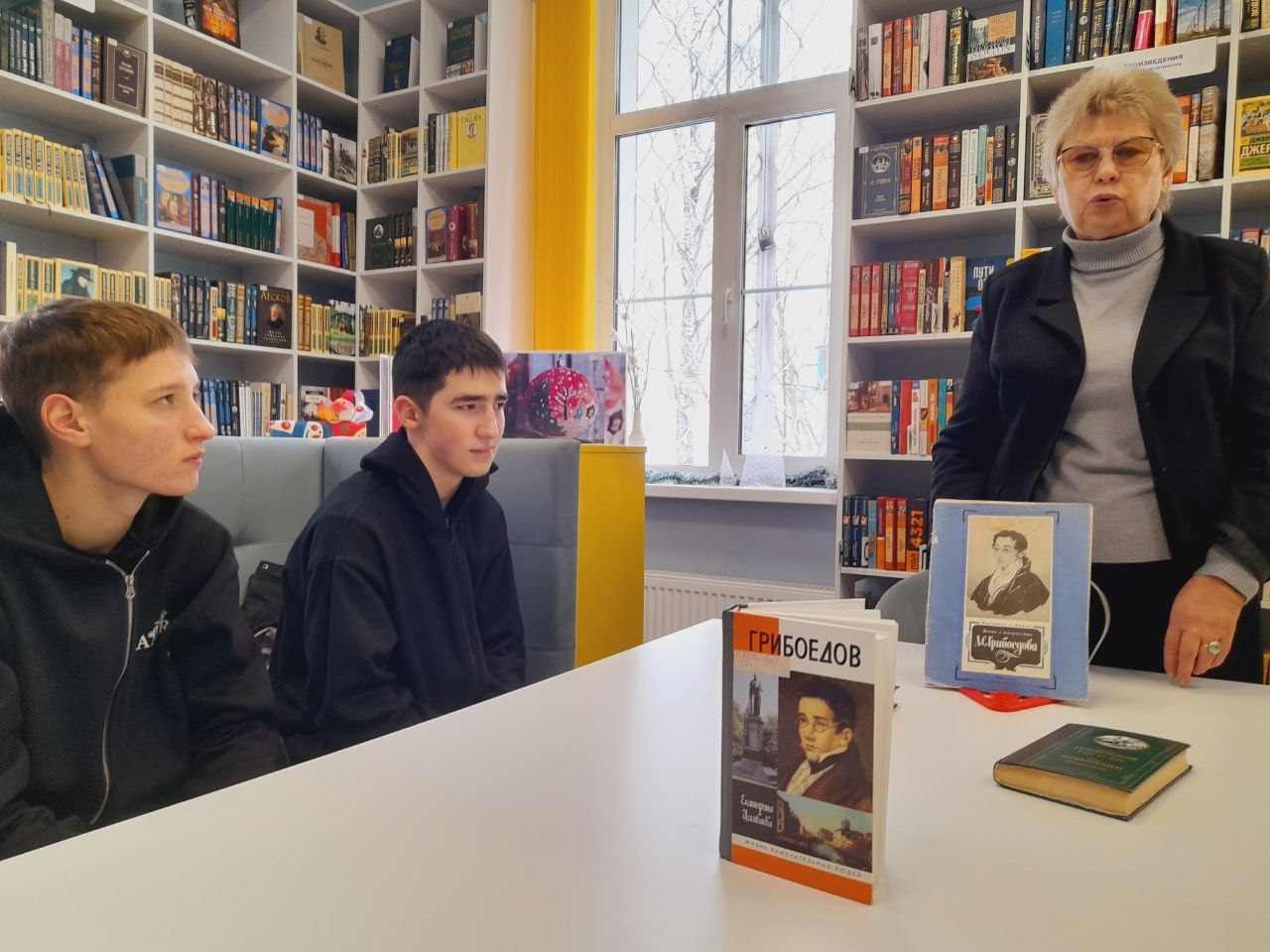 В библиотеке прошла встреча любителей "Подросткового клуба "К.О.Т" (Книги. Общение. Тусовка) на тему "Ум и дела твои бессмертны", посвящённая русскому писателю, прозаику, драматургу, дипломату, лингвисту, историку, востоковеду, пианисту и композитору Александру Сергеевичу Грибоедову (1795-1829). А. Грибоедов был одним из самых образованных людей своего времени. Целью его жизни стало служение Родине. В ходе мероприятия ребята познакомились с биографией и творчеством А. С. Грибоедова, обсудили комедию в стихах "Горе от ума", отметив, что главные герои комедии отражают пороки и недостатки ХIХ века, которые присутствуют и в ХХI веке. Образы комедии стали нарицательными, а отдельные стихи – поговорками и крылатыми словами.