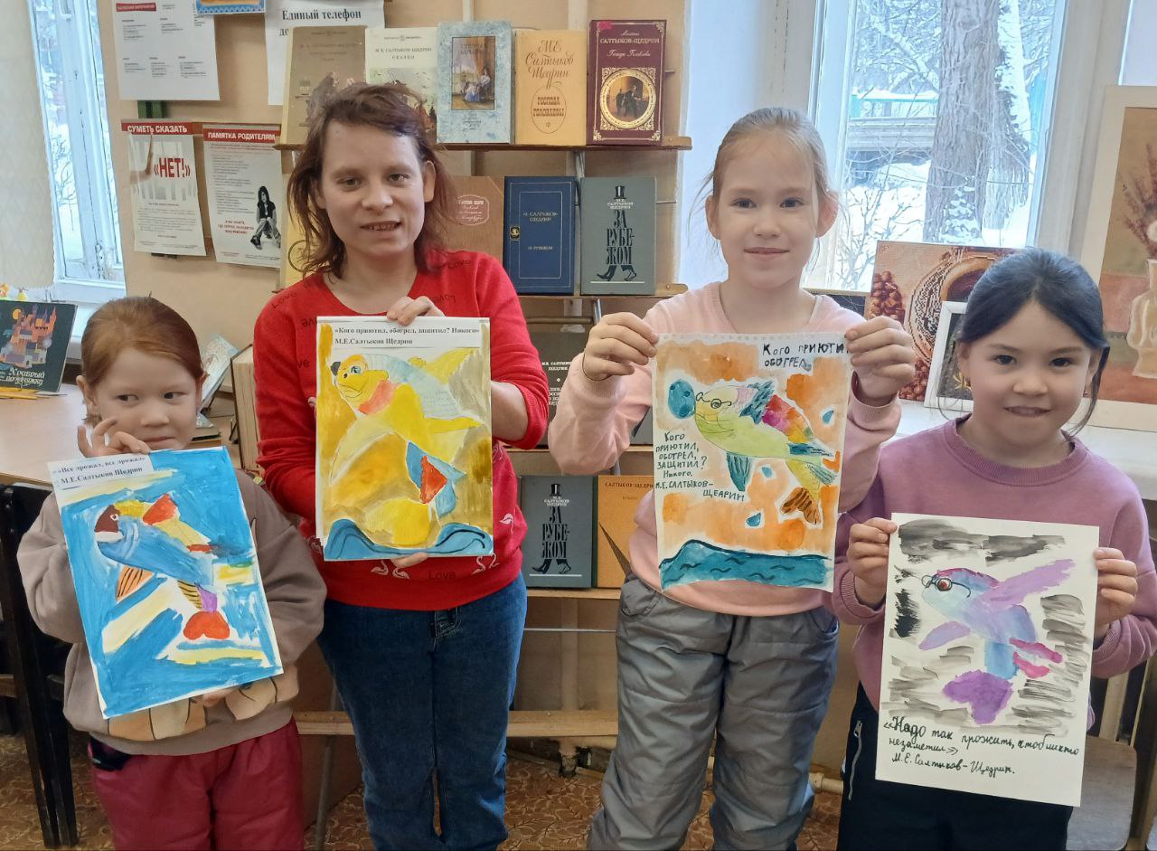 Творчество Михаила Евграфовича Салтыкова-Щедрина занимает почетное место в русской и мировой литературе. С его именем связан рассвет сатирических произведений в России. Сотрудники библиотеки на литературно-художественной композиции "Мастер эзоповского языка", в рамках лингвистического чемпионата "Сила слова", приуроченного к 200-летию со дня рождения русского писателя познакомил присутствующих с сатирическими сказками русского классика, объяснил, почему сам Салтыков-Щедрин свою манеру писать называл "эзоповым языком" и как, используя жанровое своеобразие сказок, писатель поднимал темы морали и нравственности. Юные художники и их родители проиллюстрировали знаменитую сказку писателя "Премудрый пескарь" и дополнили рисунок цитатами из произведения. А в конце мероприятия участники  провели челендж "Сфотографируйся с цитатой Щедрина в библиотеке".