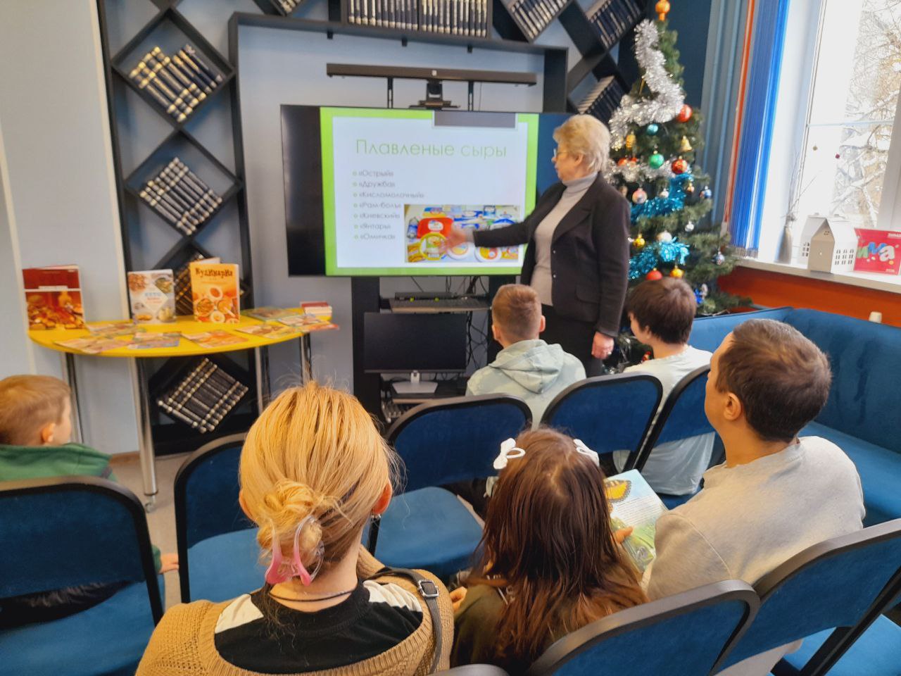 В библиотеке в рамках клуба любителей здорового питания "Вкусные истории" прошёл познавательный час на тему "Всемирный день любителей сыра". Сотрудник библиотеки рассказала об истории этого продукта, о том, что сыры различают по форме, внешнему виду, вкусу, твёрдости и составу. Традиционно в этот день, в разных странах проводятся фестивали, выставки, дегустации и мастер-классы от крупных производителей и частых сыроделов. Далее читатели узнали технологию приготовления сыров и дополнительно изучили рецепты разных блюд с добавлением сыра из журнала "1000 советов кулинару" и книги "Русская кухня".