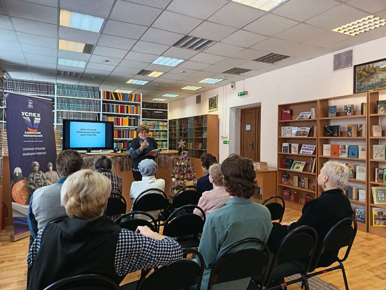 Сотрудник библиотеки представил электронную презентацию, а приглашённый гость – Красова Валентина Павловна, член совета ветеранов ПАО "РКК "Энергия" им. С. П. Королёва" рассказала ребятам о биографии и жизнедеятельности выдающегося конструктора и учёного, работавшего в области ракетной и ракетно-космической техники.