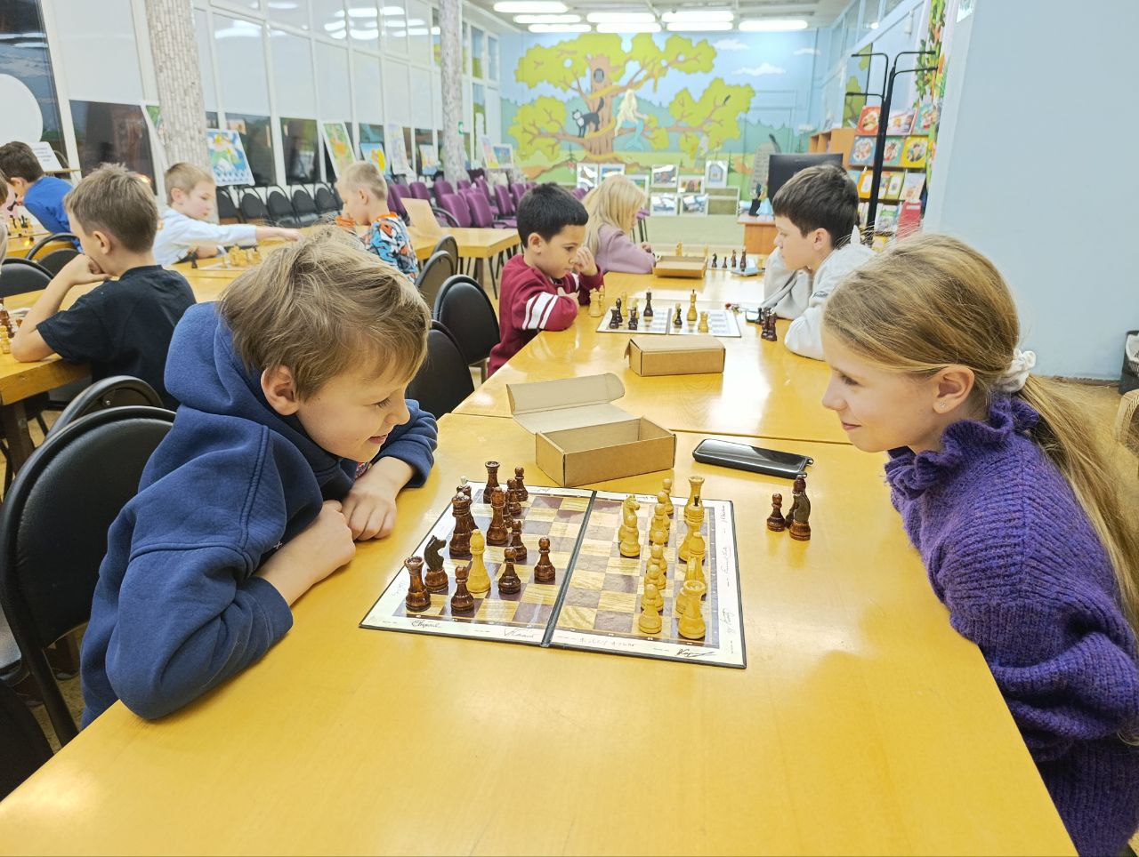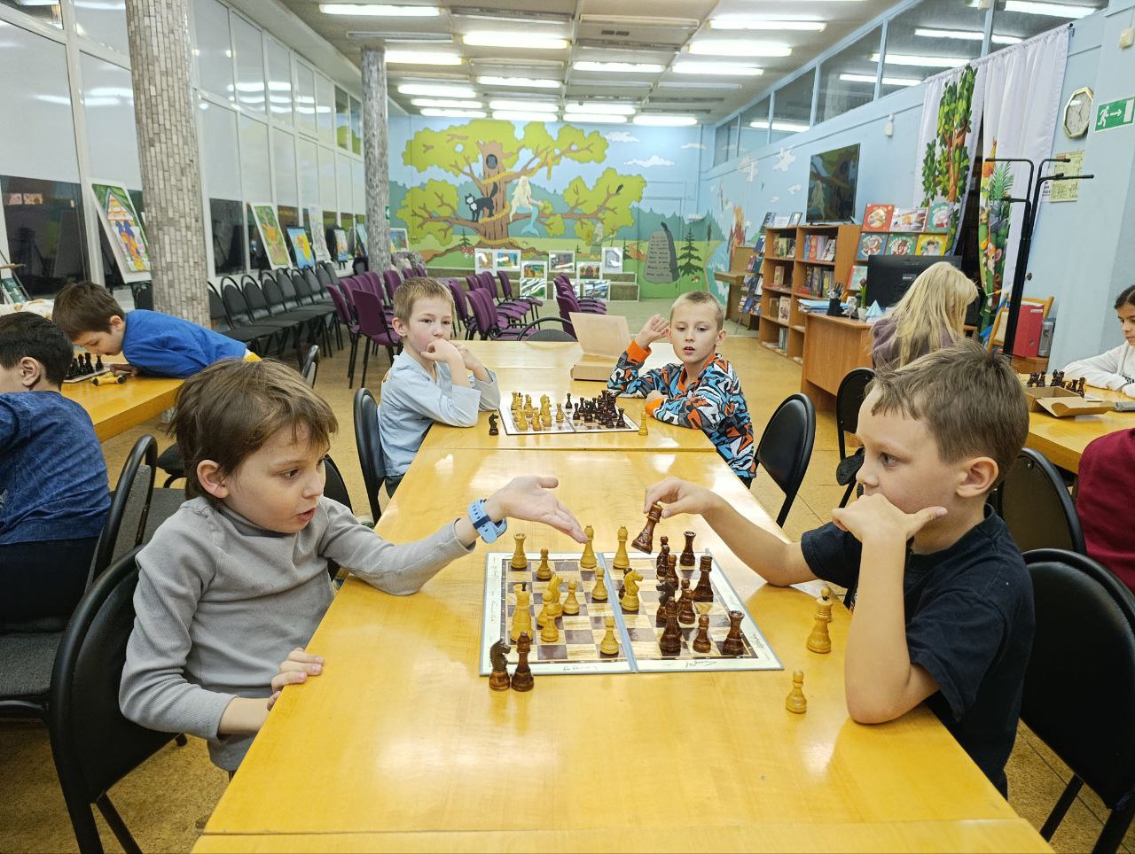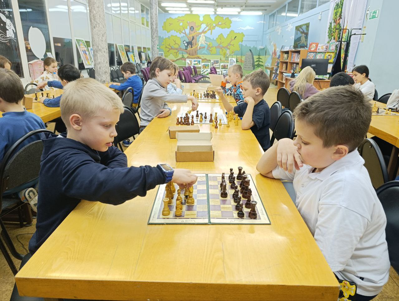 Дети разного возраста и уровня игры приходят в свою любимую библиотеку, чтобы поиграть в шахматы и с пользой провести своё свободное время.