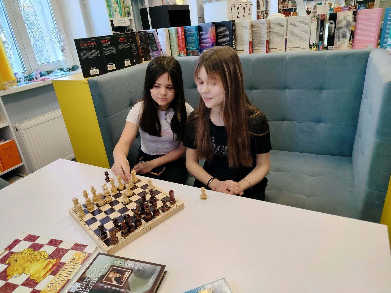 Дети разного возраста и уровня игры приходят в свою любимую библиотеку, чтобы поиграть в шахматы и с пользой провести своё свободное время.