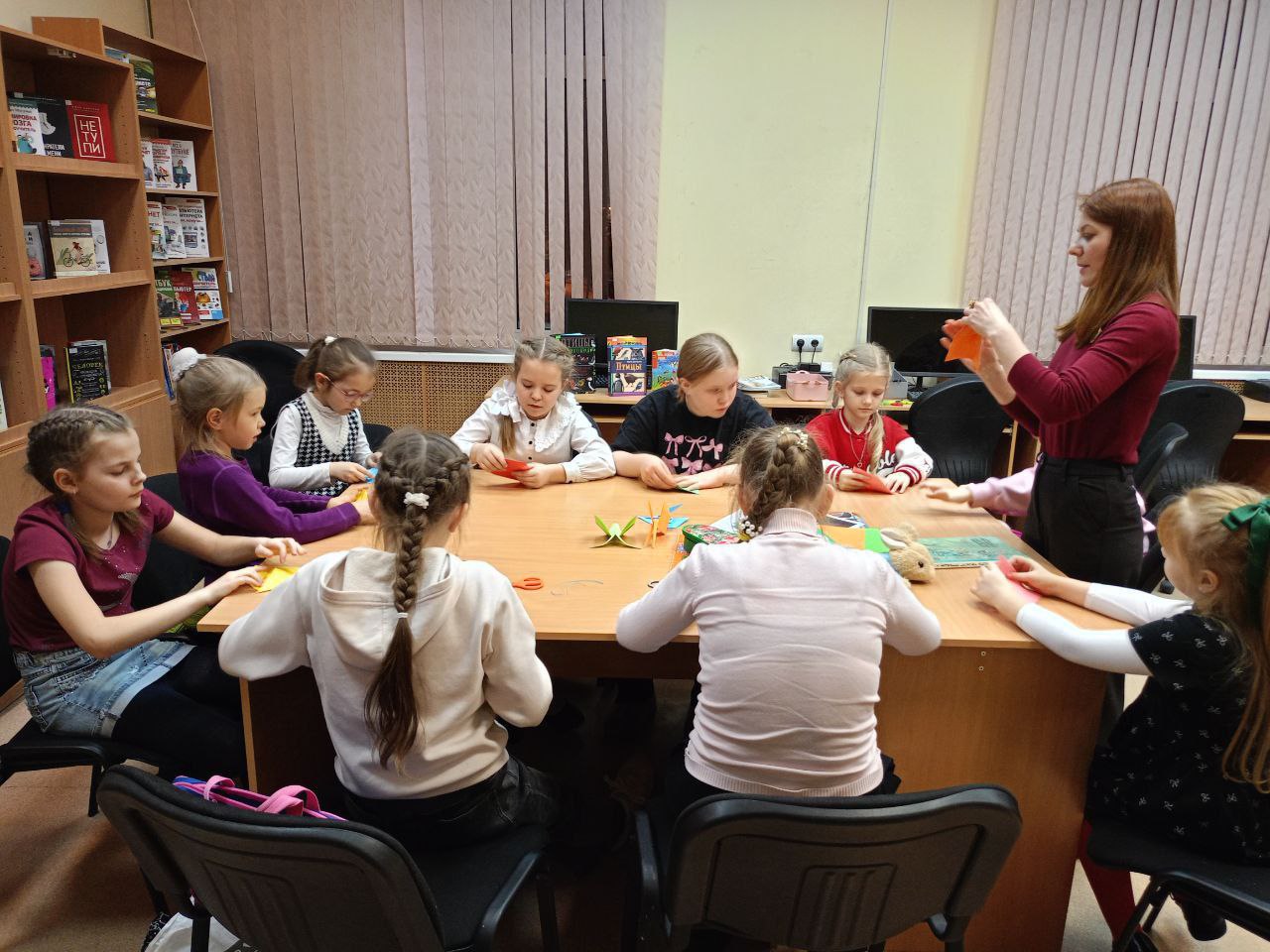 В библиотеке в рамках кружка оригами "Журавлик" прошёл мастер-класс "Шустрая белочка". Сотрудники рассказали детям о жизни белок в лесу в разное время года, вспомнили сказку А. С. Пушкина "Сказка о царе Салтане..." и помогли ребятам смастерить бумажных белочек.