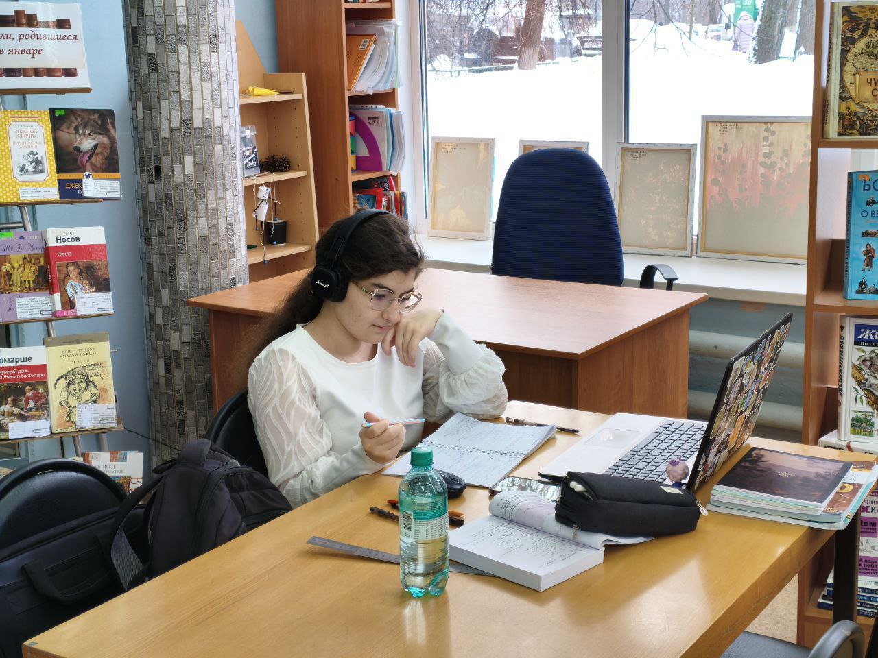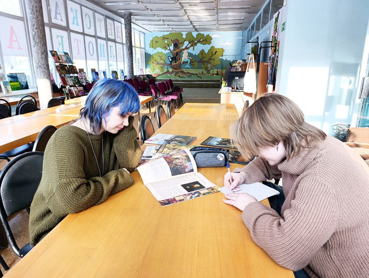 Школьники, пользуясь бесплатным Wi-Fi, научно-популярной и художественной литературой из фонда библиотеки, готовились к урокам, делали доклады, инсценировали итоговое собеседование по русскому языку.