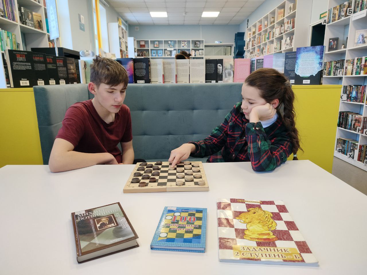 Гости библиотеки посетили клуб любителей шахмат и шашек "Серебряная ладья". Ребята играли в шахматы и шашки и убедились, как интересно и полезно играть в эти древние игры, которые развивают умственные способности человека.