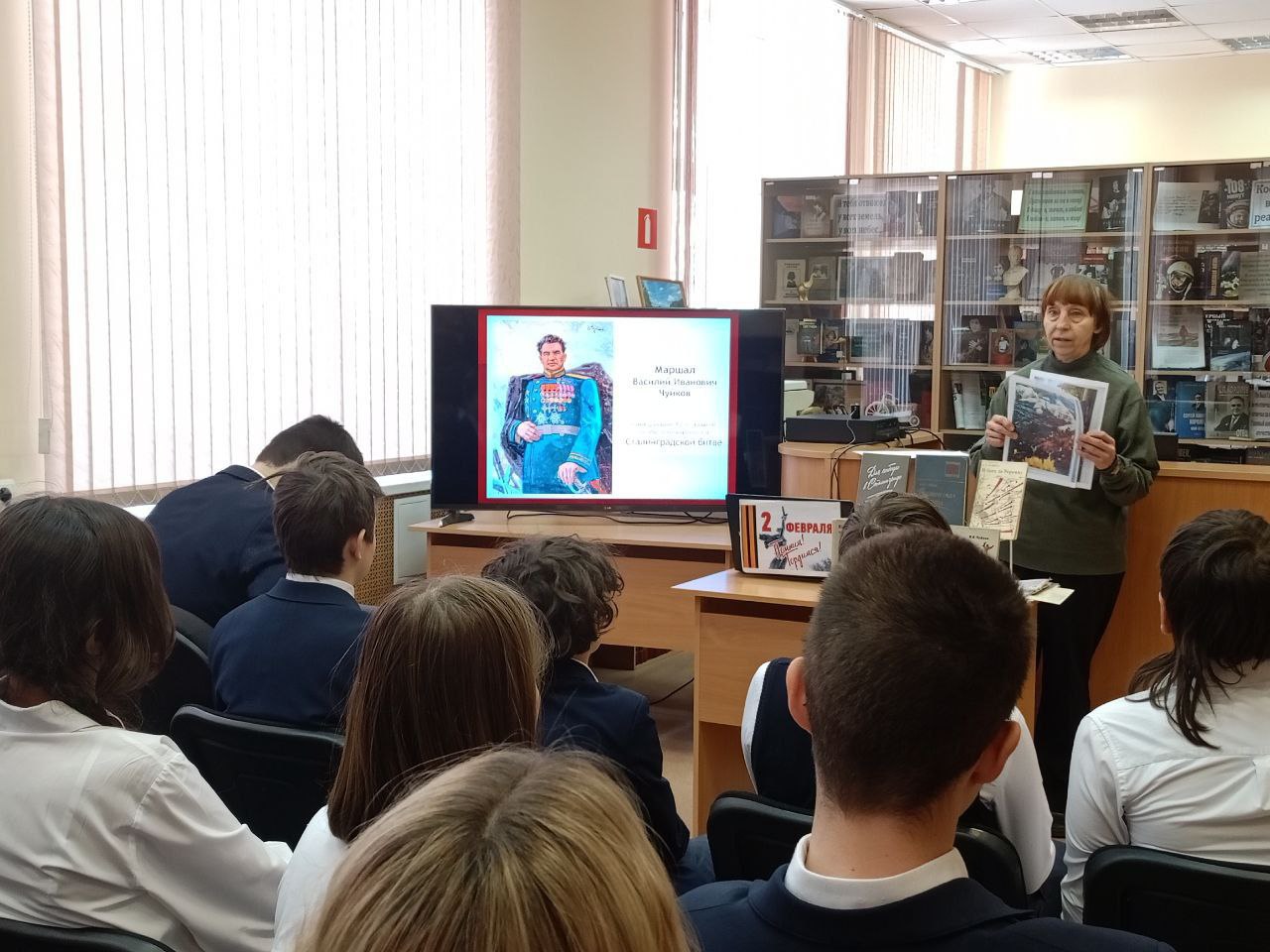 Час мужества "Генерал Штурм" провели сотрудники библиотеки для учащихся Гимназии № 9, приуроченный ко Дню воинской славы России – Дню окончания Сталинградской битвы – и в рамках регионального проекта "Успех V единстве поколений".