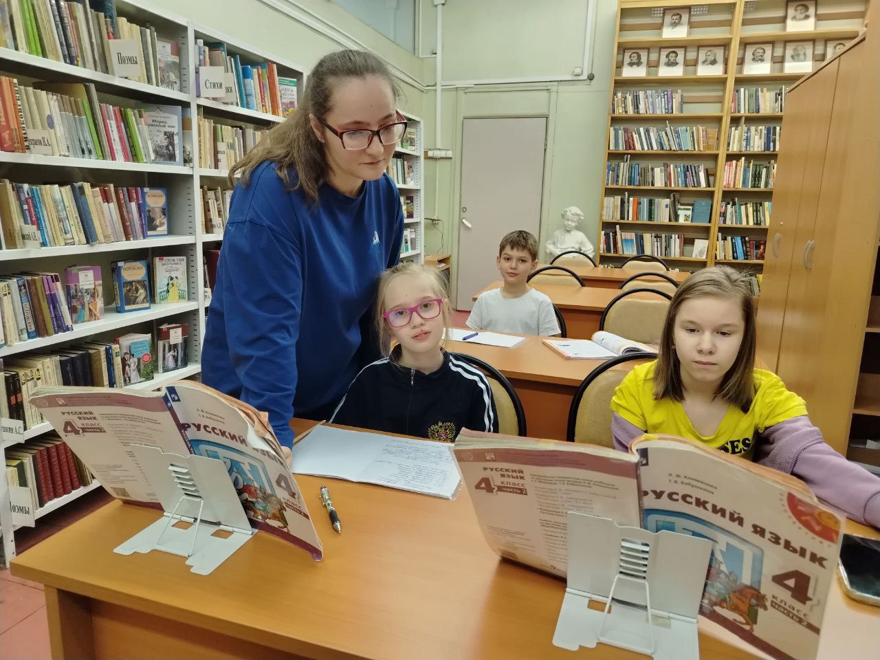 В библиотеке в рамках мастер-класса "Отличник" школьники выполняли разноуровневые задания по русскому языку, повторяли склонение имён существительных, правописание мягкого знака в словах.