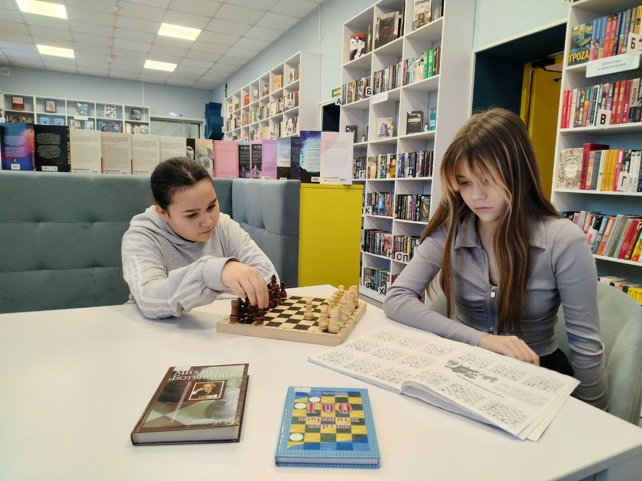Гости библиотеки посетили клуб любителей шахмат и шашек "Серебряная ладья". Ребята играли в шахматы и шашки и убедились, как интересно и полезно играть в эти древние игры, которые развивают умственные способности человека.