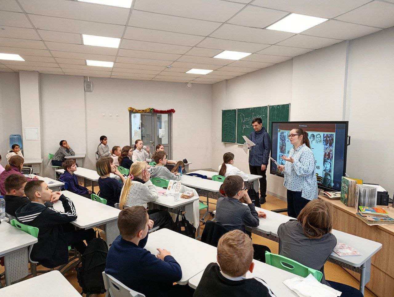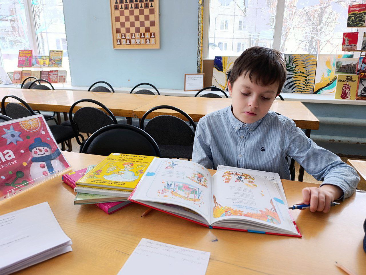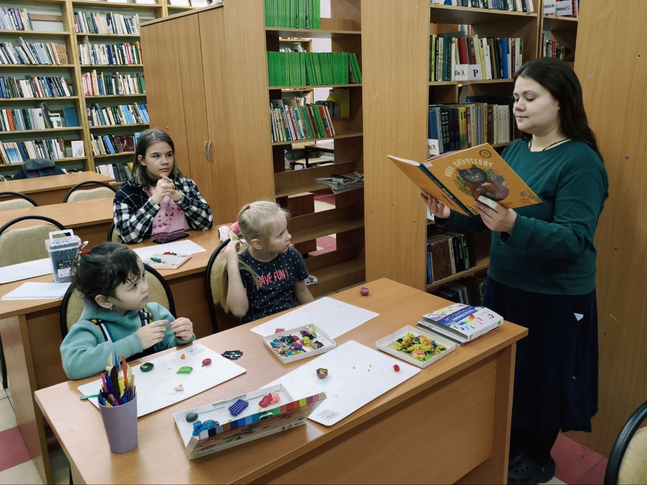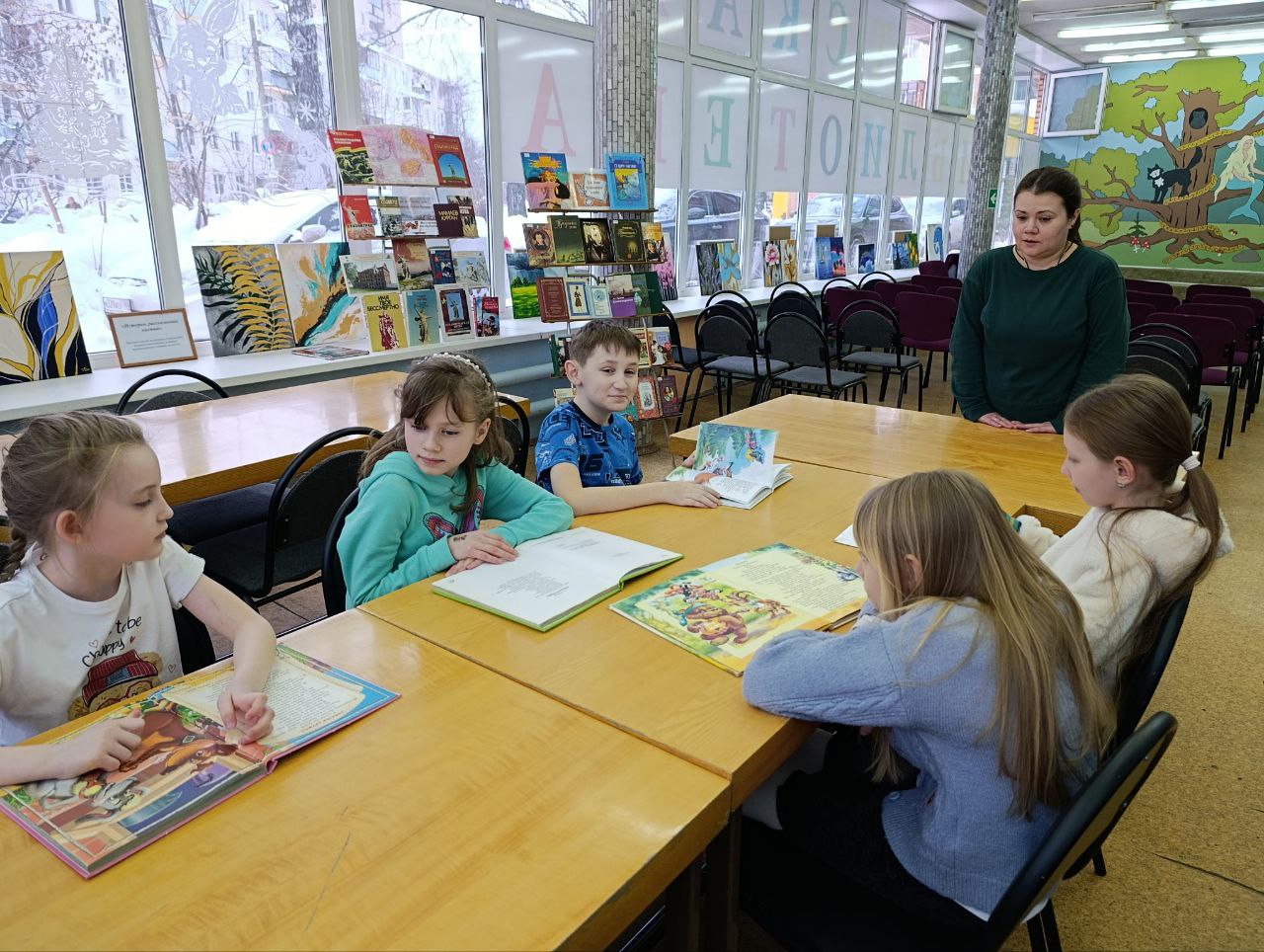 Затем сотрудник библиотеки обратил внимание ребят на то, что 13 февраля 2026 года русскому писателю Ивану Андреевичу Крылову исполняется 257 лет, и поэтому предложил детям в рамках минуты тихого чтения "Время читать!" вспомнить и прочитать любимые басни И. А. Крылова.