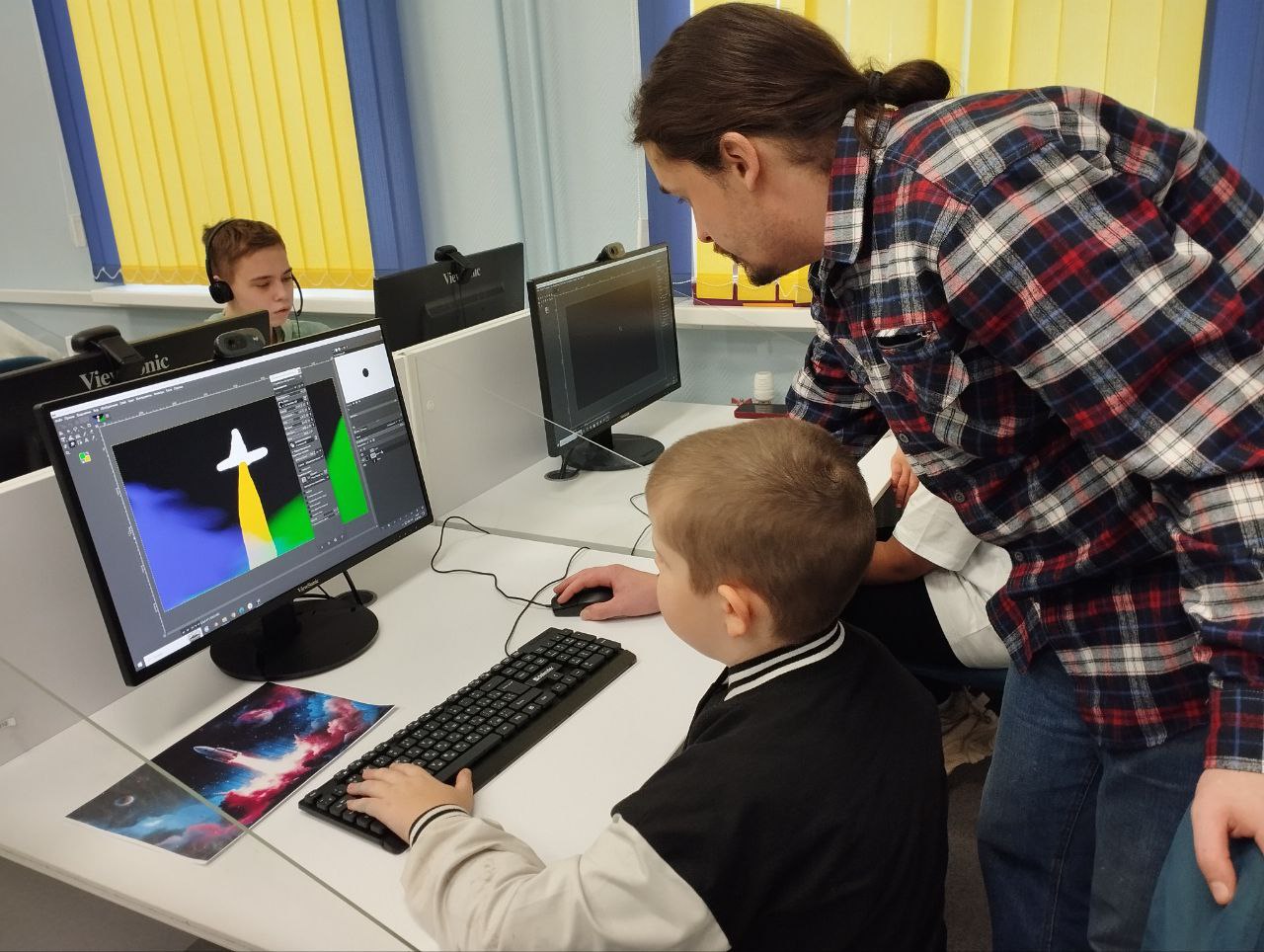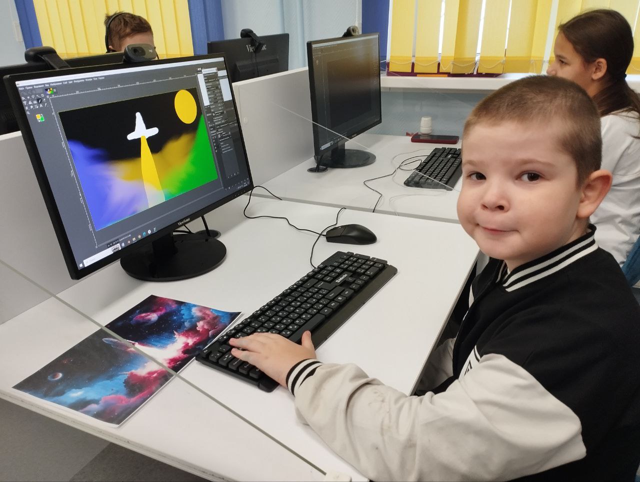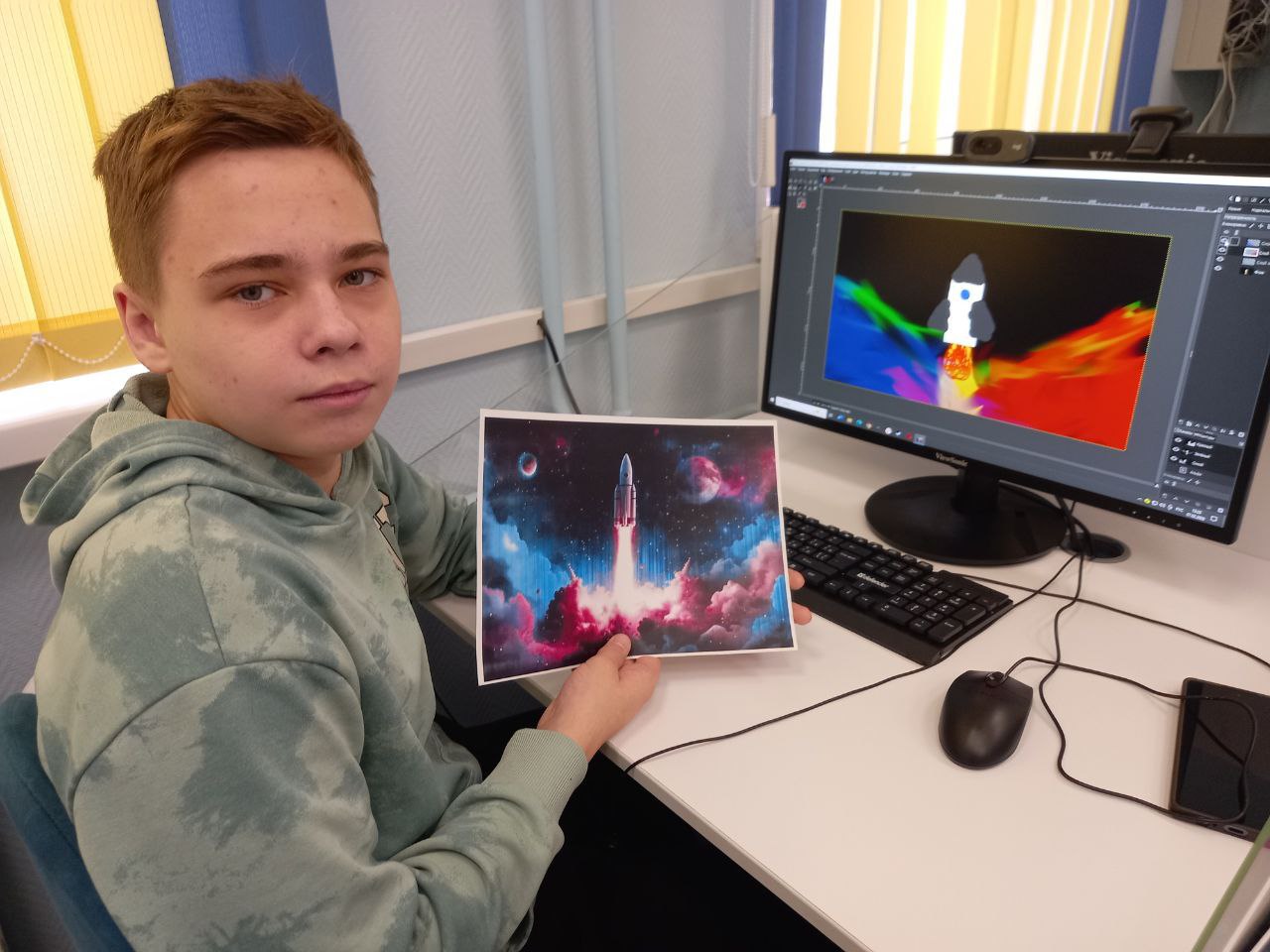 В библиотеке в рамках практического курса по графическому редактору GIMP "Gimpики" в продолжении курса: "Космическое путешествие "Меж звёзд и галактик" ребята, рисуя взлёт ракеты, познакомились с понятием "слоя" в программе.